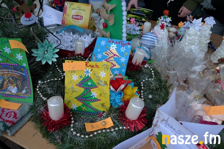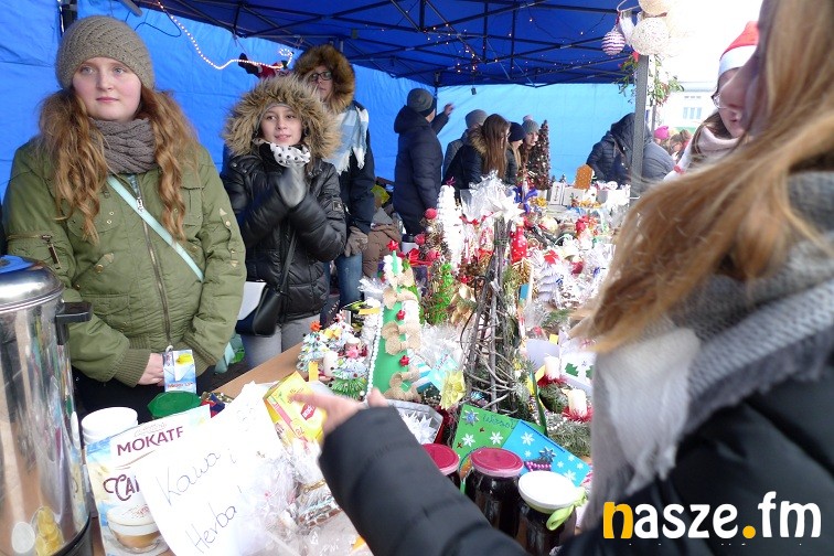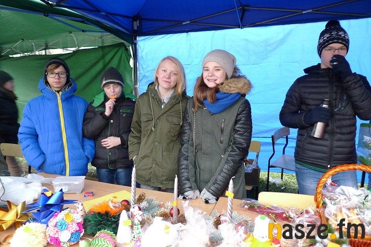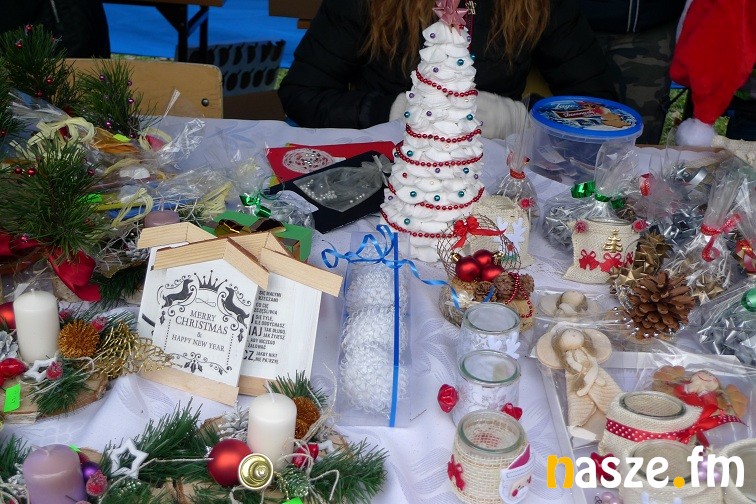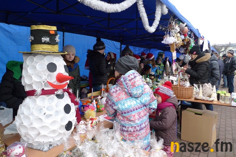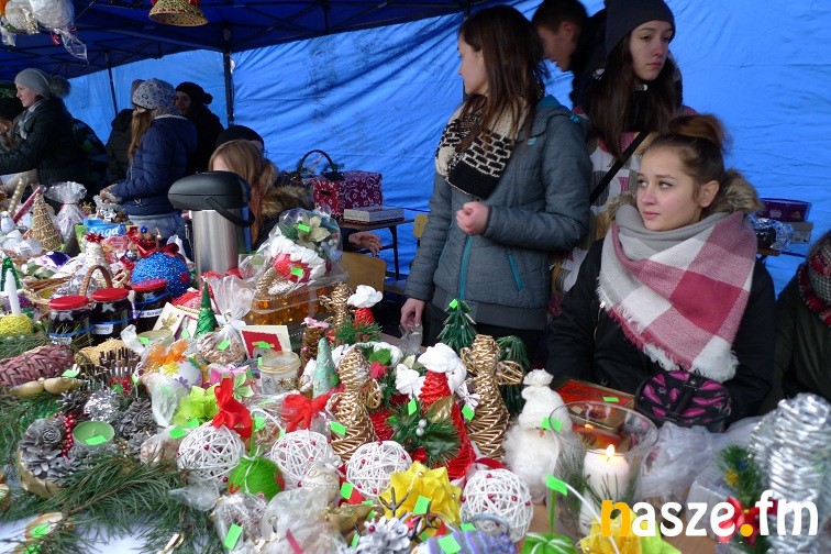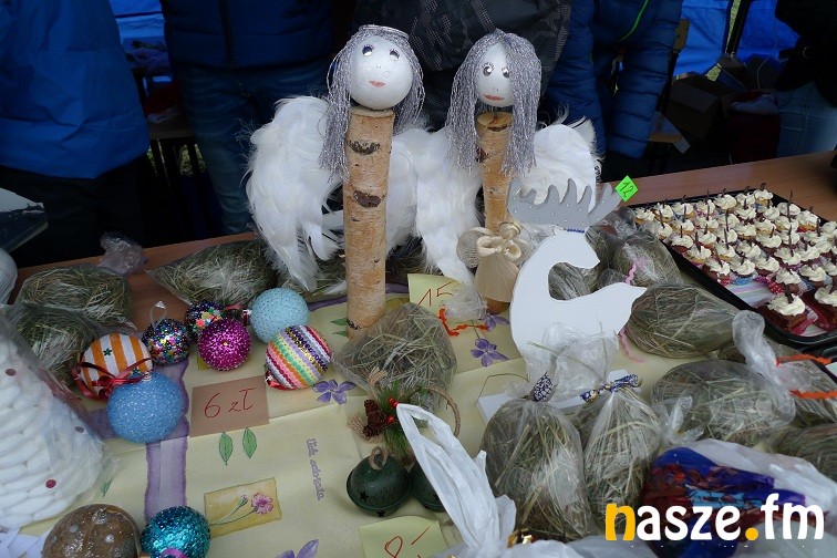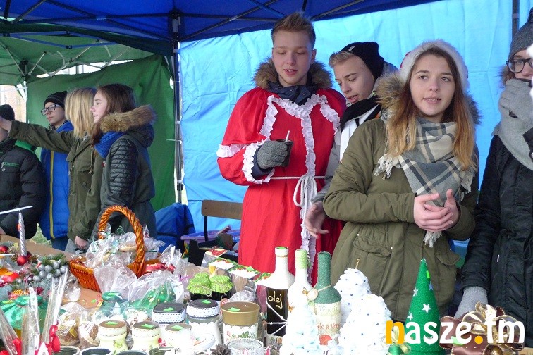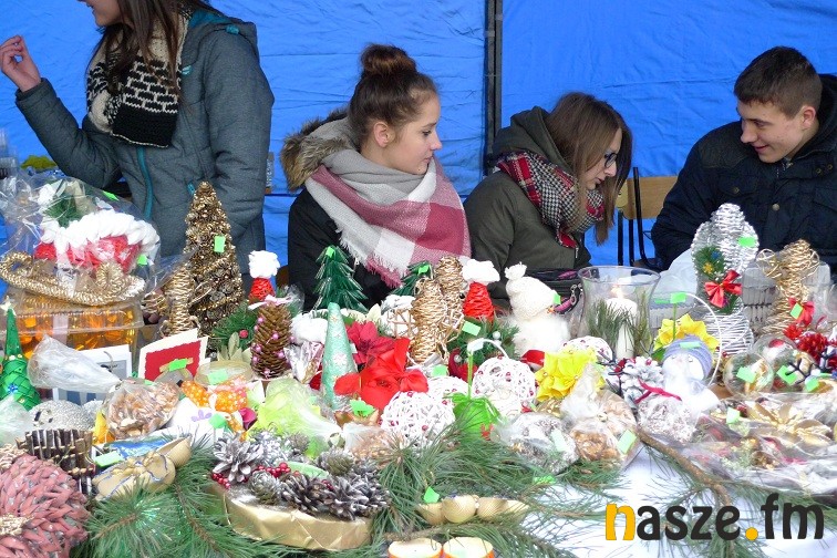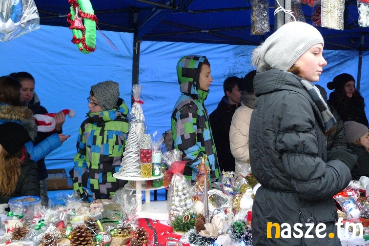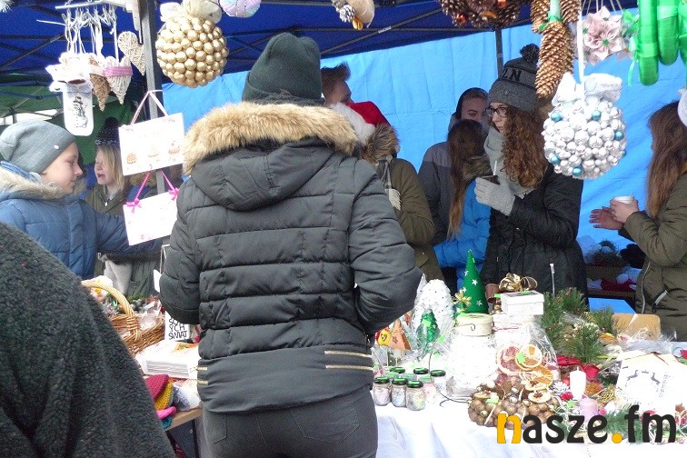 Gimnazjaliści narzekali dziś trochę na zimno, ale z entuzjazmem i uśmiechem zachęcali do kupowania naprawdę pięknie wykonanych przedmiotów. W jednych zachwycała precyzja wykonania – aniołki robione na szydełku czy bombki wyklejane drobnymi kwiatkami, w innych pomysłowość- imponująco prezentował się bałwan wykonany z plastikowych kubków. Wśród kupujących przechadzał się też św. Mikołaj. Nie zabrakło muzyki, rano śpiewał szkolny chór, później klimat tworzyły świąteczne przeboje.