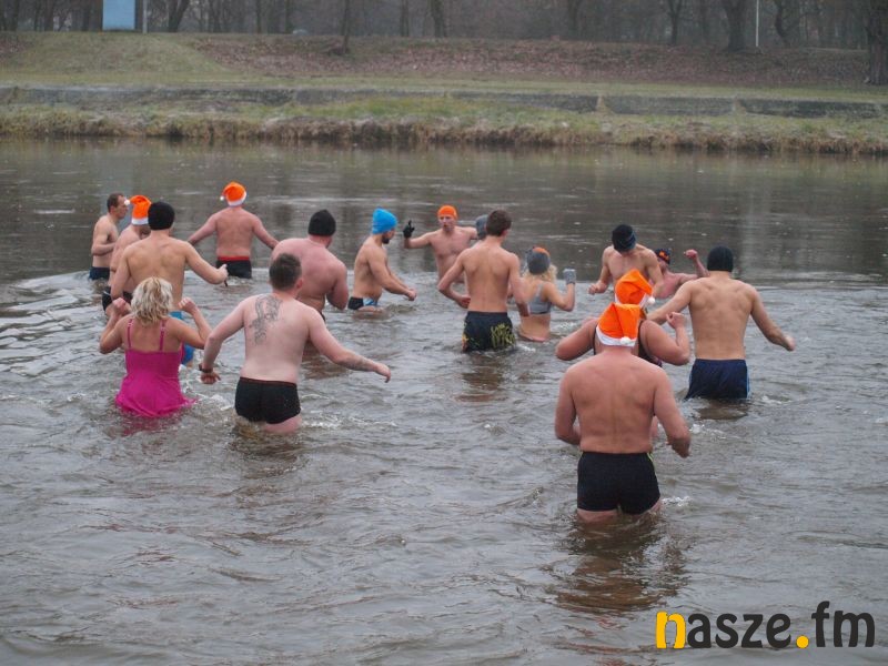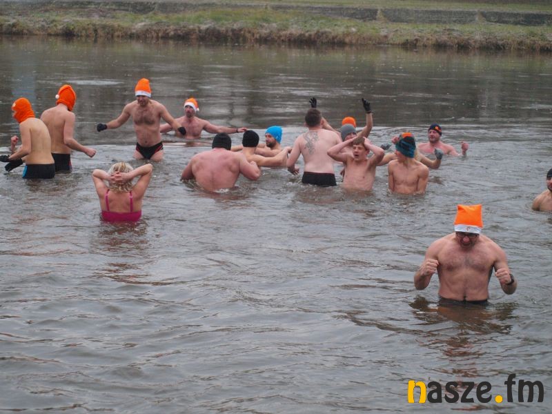 Jeszcze w trakcie marszu nordic walking do rozgrzewki przystąpiła blisko 30. osobowa grupa morsów. Kąpiel poprowadził Piotr Bąk z łaskiego Bractwa Thratlonu Sztuk Walki, który przyjechał do Sieradza z grupą zawodników tuż po dwóch wygranych sobotnich walkach. Minimum na zaliczenie kąpieli była minuta spędzona w lodowatych nurtach Warty, jednak najwytrwalsi spędzili w wodzie ponad 10 minut. Wśród kąpiących się morsów byli i tacy, którzy wcześniej biegali, nie brakowało też morsów - nowicjuszy. Udaną kąpiel zaliczył też m.in. Piotr Matusiak, sieradzki siłacz, zdobywca Pucharu Polski w armwrestlingu oraz uczestnik Pucharu Świata w tej dyscyplinie.