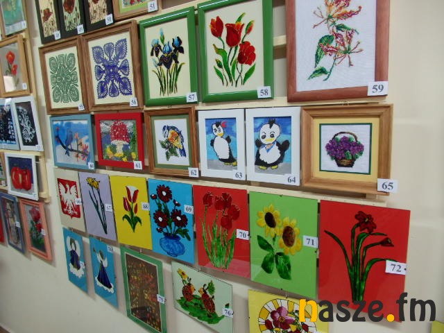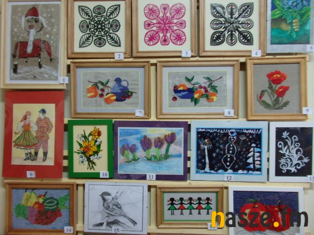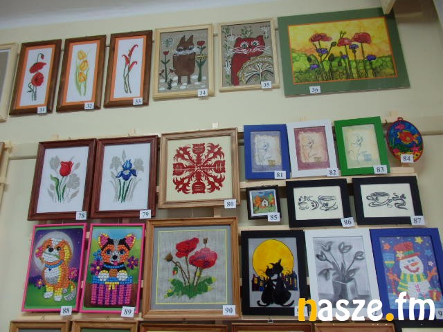 - Moja praca jest na białym papierze i dwie wyszywanki. Wyszywanki są wykonane haftem krzyżykowym i przedstawiają myszki a ta na papierze to kwiat. Najbardziej się stresuje, czy moje prace zostaną sprzedane - dodaje Iwona Wojtczak.