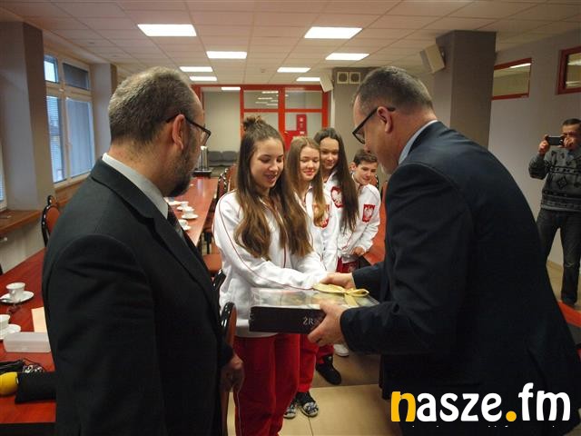Zawody w Holandii odbyły się w ostatni weekend listopada. Sześcioosobowa ekipa SKKK przywiozła z turnieju w Papendal 6 krążków. Na podium mistrzostw Europy stanęli: Ida Wajgelt (brązowe medale w kata i kumite w kat. 14-15 lat), Zuzanna Duch (srebrny medal w kumite, kat. 12-13 lat), Weronika Łojewska (srebrny medal w kumite, kat. 16-17 lat), Kinga Tokarska (brąz w kumite, kat. 14-15 lat), Przemysław Maruszewski (brąz w kumite, kat. 12-13 lat). W Holandii startowała również Iga Wajgelt, ale tym razem bez zdobyczy medalowych. Na dzisiejszym spotkaniu z grona medalistów z Holandii zabrakło tylko Weroniki Łojewskiej, która uczy się we Wrocławiu. Krótką prezentację multimedialną z pobytu w Holandii przedstawił prezes i trener sieradzkiego klubu Robert Wajgelt, później nastąpiła wymiana upominków, prezydent nagrodził sportowców grą promującą miasto Sieradzkie Wrota Czasu oraz drobnymi gadżetami związanymi z Sieradzem. Trener i zawodnicy zrewanżowali się okolicznościową, reprezentacyjną koszulką.