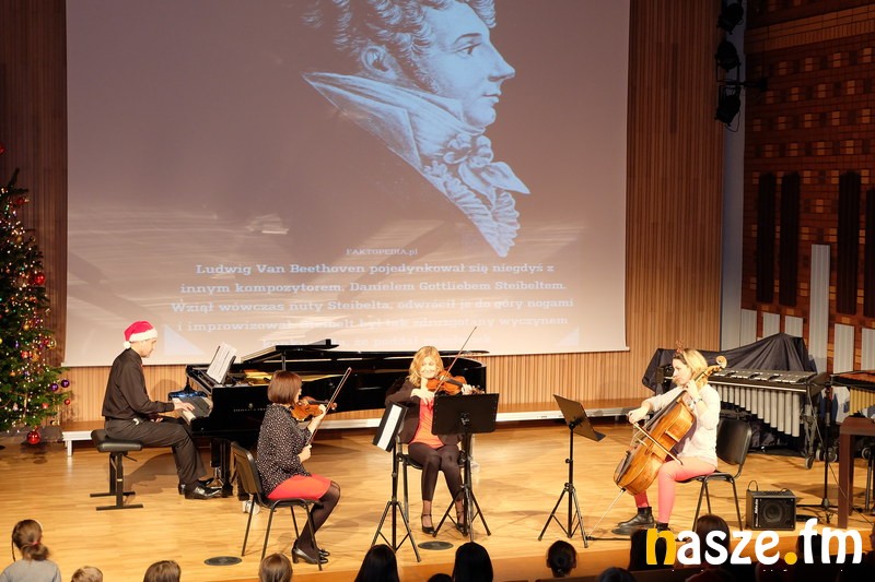 Koncert Mikołajkowy Nauczyciele Dzieciom w Państwowej Szkole Muzycznej I st. obfitował w niespodzianki. Na początku przybył do dzieci najprawdziwszy Mikołaj z Laponii. Obdarzył wszystkie dzieci słodyczami, wyjaśnił kilka problemów nurtujących dzieci – np.: czy w Laponii jest Wi – Fi i kiedy Mikołaj jeździ na urlop. Po krótkiej rozmowie z Mikołajem, w doskonałych nastrojach dzieci wysłuchały koncertu przygotowanego przez nauczycieli szkoły muzycznej. W tym wyjątkowym dniu nauczyciele wykonali utwory, nad którymi zazwyczaj pracują ze swoimi podopiecznymi. Młodzi Sieradzanie usłyszeli „Małego Murzynka” C. Debussyego, „Taniec lodowy z Neptuna” Piotra Makkonena, czy „Humoreskę” Antoniego Dvorzaka. Ale zanim nauczyciel pojawił się na scenie musiał zostać rozpoznany po głosie przez publiczność. Nauczyciele oraz pracownicy administracyjni czytali ciekawostki dotyczące muzyki, muzyków, akustyki i psychologii. Dzięki temu zebrani mogli się dowiedzieć, który ze znanych muzyków jest astrofizykiem i pracuje w NASA, kto był kompozytorem dzwonka telefonu NOKII, gdzie znajdują się największe organy na świecie i czy kukurydza „gra” jak rośnie. Koncert zakończył się wspólnym kolędowaniem.