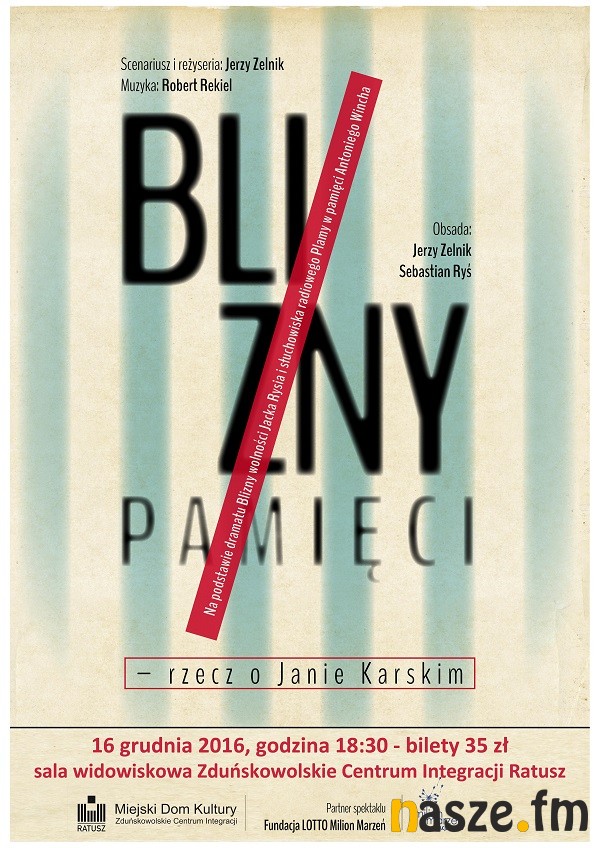 Centrum Integracji Ratusz zaprasza na spektakl "Blizny Pamięci. Rzecz o Janie Karskim". Wydarzenie zaplanowano na piątek, 16 grudnia.