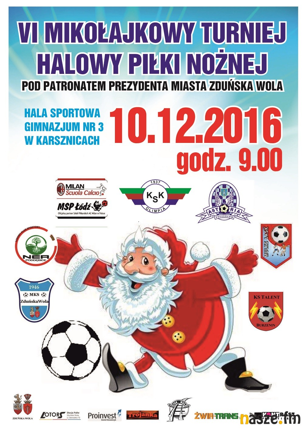 VI Mikołajkowy Turniej Piłki Nożnej pod Patronatem Prezydenta Zduńskiej Woli odbędzie się w sobotę w hali w Karsznicach. Zagrają drużyny z rocznika 2003.