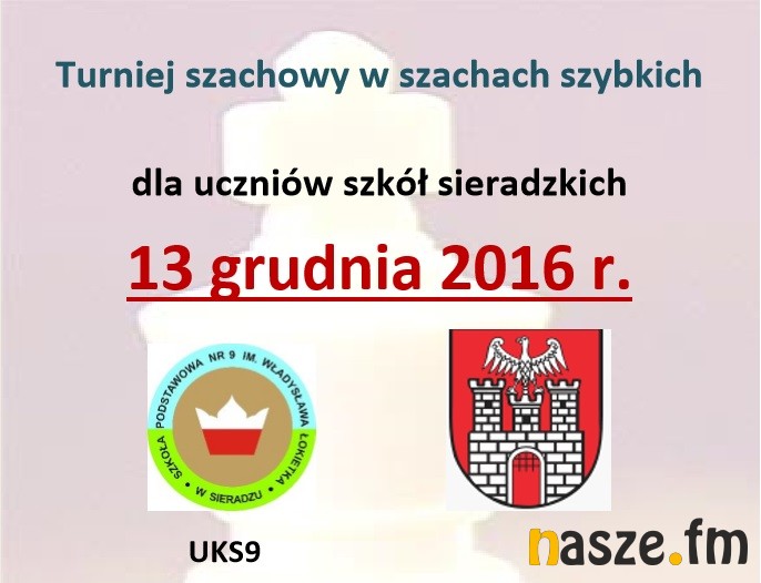 Uczniowski Klub Sportowy Dziewiątka jest organizatorem turnieju szachowego dla uczniów sieradzkich szkół. Zawody odbędą się we wtorek 13 grudnia.