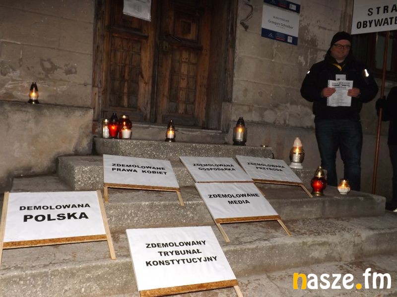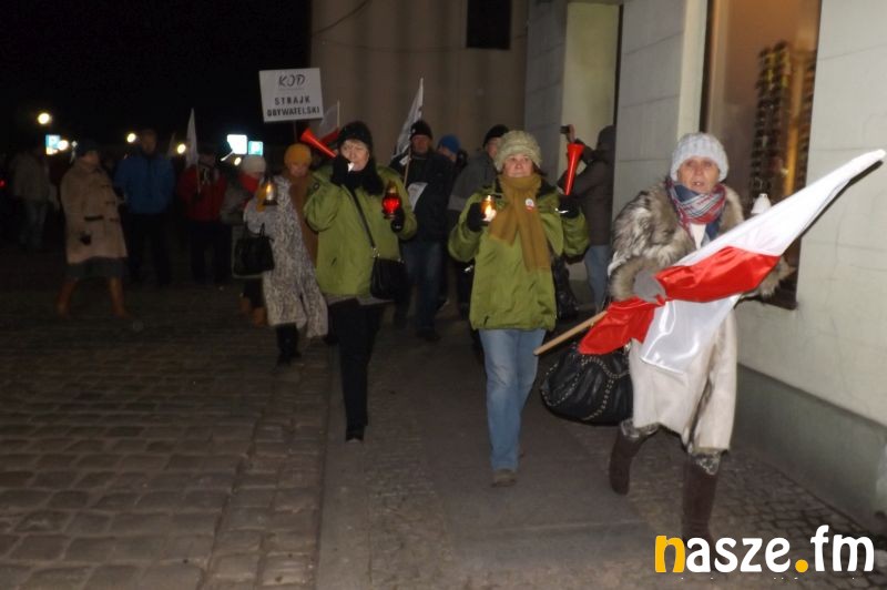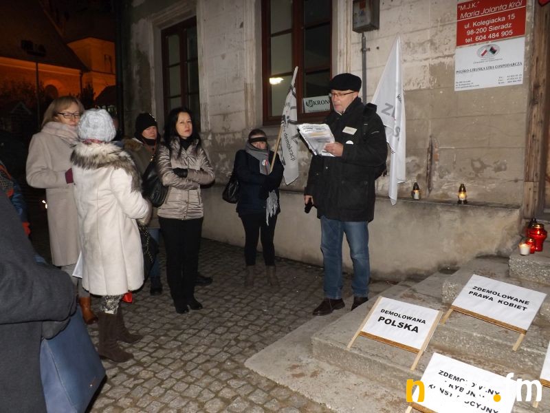 Na sieradzkim Rynku pojawiło się ponad pół setki osób. Przyszli ze zniczami, latarkami, gwizdkami, trąbkami, flagami. Zaczęli od odśpiewania hymnu narodowego. Minutą ciszy uczcili pamięć ofiar stanu wojennego w Polsce. Mówili, że przyszli tu właśnie 13 grudnia ku przestrodze. Bo dla wielu ten dzień, to symbol opresji PiS-owskiej władzy wobec państwa, bo 35 lat temu PRL-owska władza zdeptała zaczątki polskiej wolności.