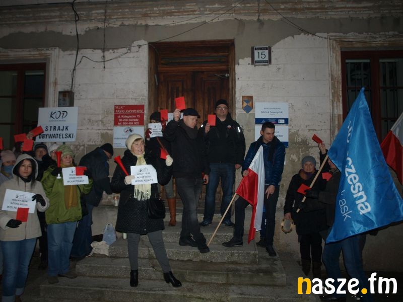 Nie inaczej w regionie. Przed siedzibą biura na ulicy Kolegiackiej od godz. 17 słychać było syreny i głosy protestujących - "Precz z Kaczorem - dyktatorem", "Nie pozwolimy na dalszą dewastację Państwa Polskiego" i "Wolne media - wolna Polska".