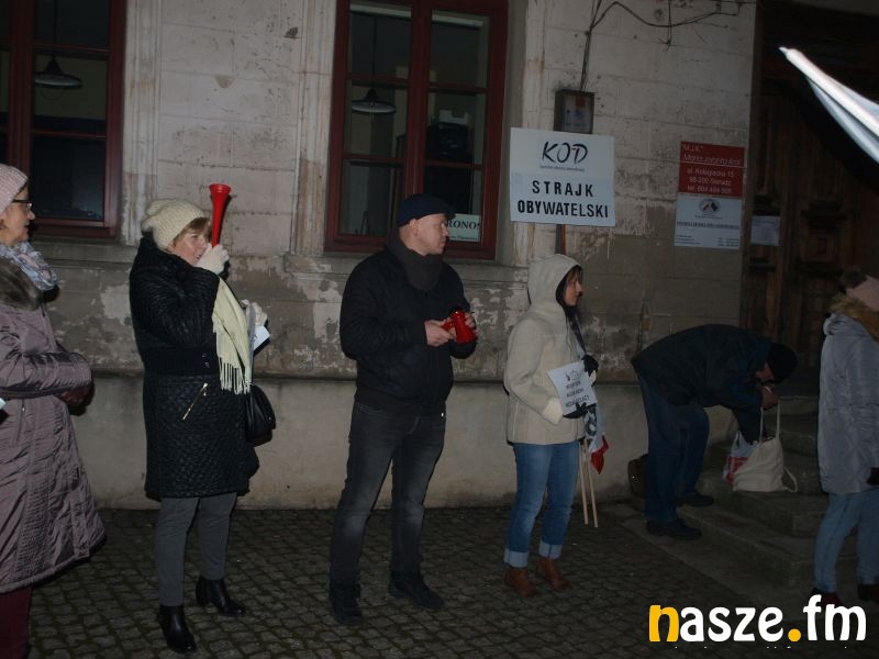 W Sieradzu odbył się dziś kolejny protest działaczy Komitetu Obrony Demokracji. Tym razem protestowali przed siedzibą PiS przy ul. Kolegiackiej.