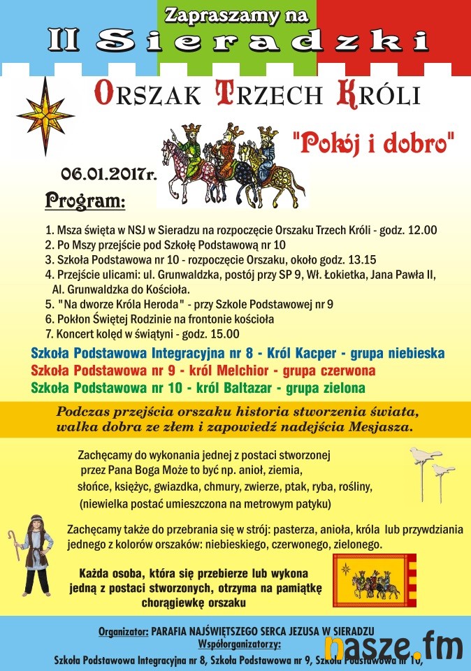 Po zeszłorocznym debiucie, gdy na ulice miasta wyszły prawdziwe tłumy czas na drugą edycję. Tegorocznym hasłem Sieradzkiego Orszaku Trzech Króli jest "Pokój i dobro".
