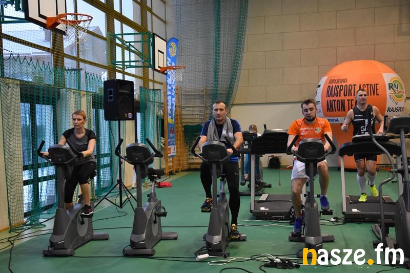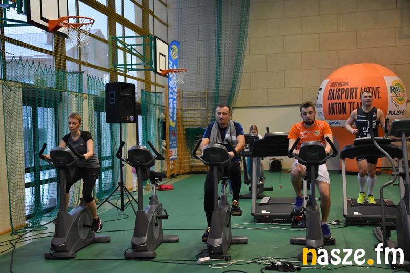 - Co godzinę można było uczestniczyć w innym bloku tematycznym. Zaczęliśmy od Artura Kozłowskiego, potem ze swoim pokazem wystąpiło Łaskie Bractwo Triatlonu Sztuk Walk, a Piotr Matusiak udzielał wskazówek jak siłować się na rękę. Zaprezentował się również Piotr Szymala z kajakarzami. Pomiędzy poszczególnymi blokami Genowefa Lange z Bełchatowa prowadziła zajęcia na trampolinach. Dodatkowo przez całą dobę można było, na różnych urządzeniach treningowych, "wykręcił" kwadrans dla Oliwki - wyjaśnia Michał Piotrowicz z RajSport Activ.