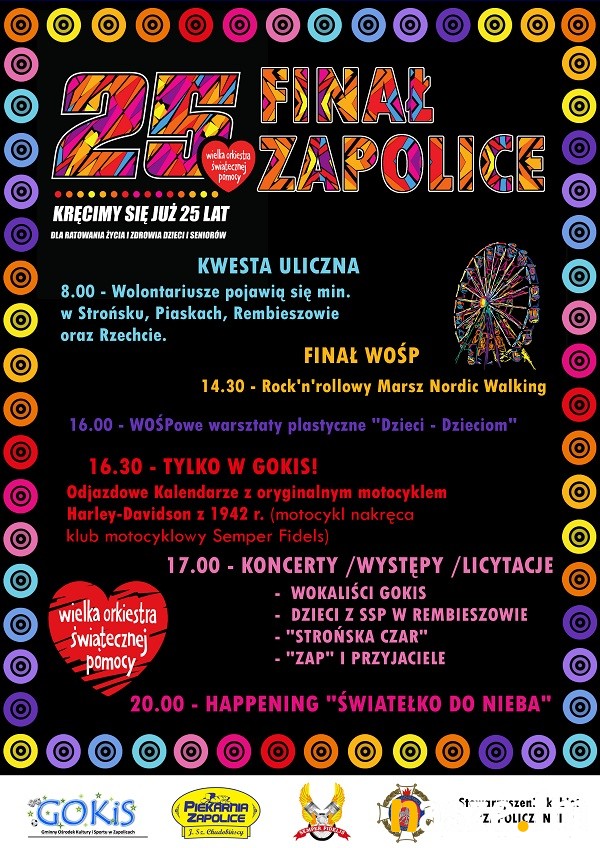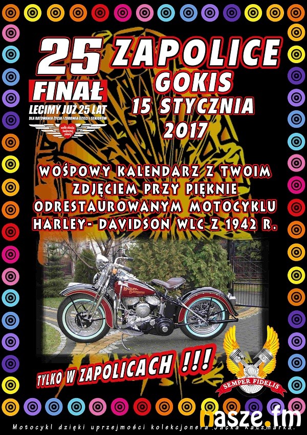 - Jak co roku wolontariusze przy naszej pomocy przygotowali koncerty, licytacje oraz wydarzenia, które będą towarzyszyć finałowi. Będą to m.in. rock'n'rollowy marsz nordic walking, warsztaty plastyczne dla dzieci, no i rzecz, która wyróżnia Zapolice na wośpowej mapie, czyli odjazdowy kalendarz z unikatowym motocyklem - wylicza Paweł Perdek, dyrektor GOKiS Zapolice.