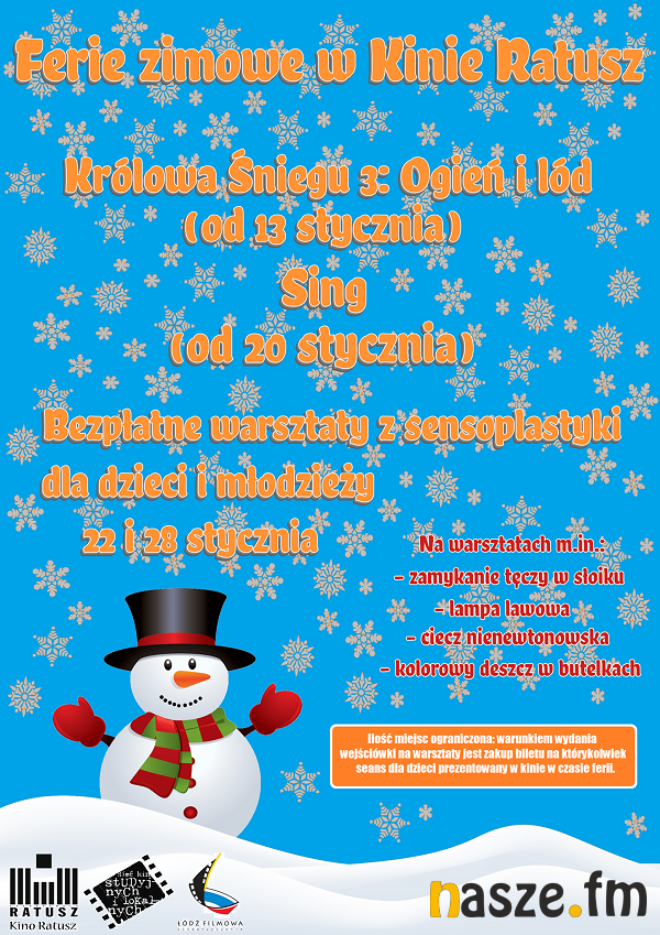 Kino Ratusz zaprasza wszystkie dzieci spędzające ferie w mieście na zajęcia. Warunkiem otrzymania wejściówki jest zakup biletu na dowolnie wybrany seans prezentowany w czasie ferii.
