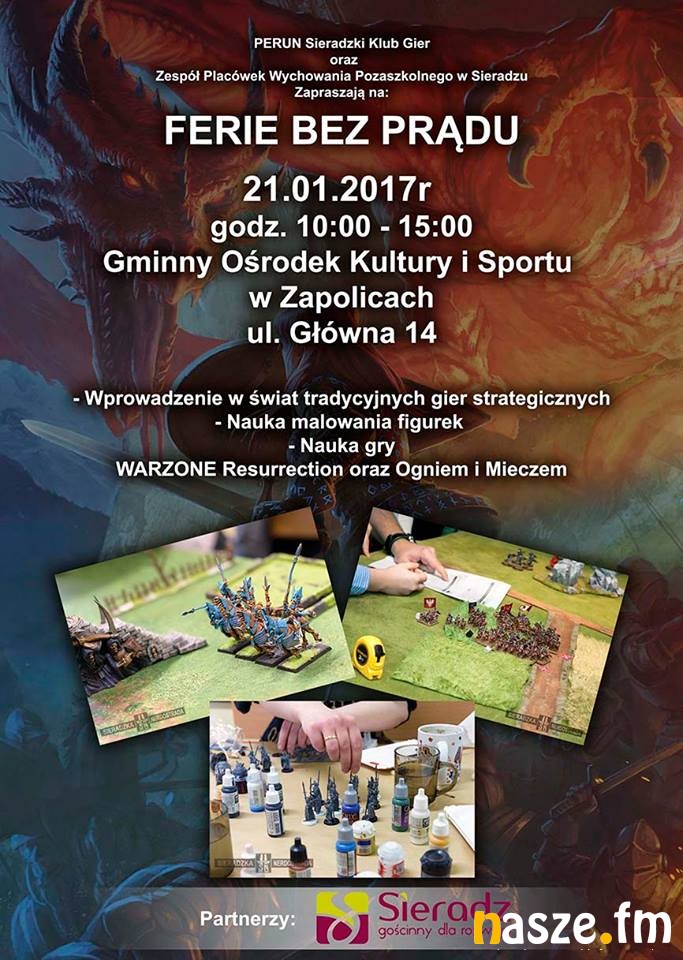 Gminny Ośrodek Kultury i Sportu w Zapolicach zaprasza na fantastyczne, wypełnione strategiami, magią, mieczem i nie tylko spotkanie. Wszystko w ramach Ferii Bez Prądu.
