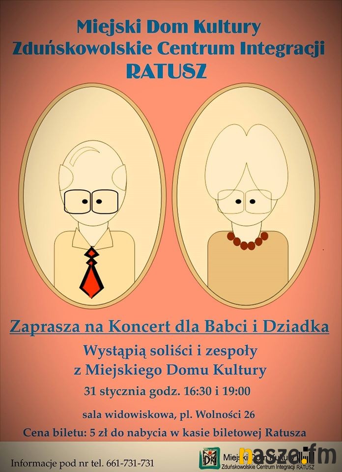 W sposób szczególny podopieczni Miejskiego Domu Kultury, Centrum Integracji Ratusz chcą uczcić święto babci i dziadka. Zaprezentują swoje talenty na scenie Zduńskowolskiego Centrum Integracji Ratusz.