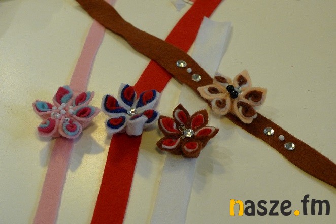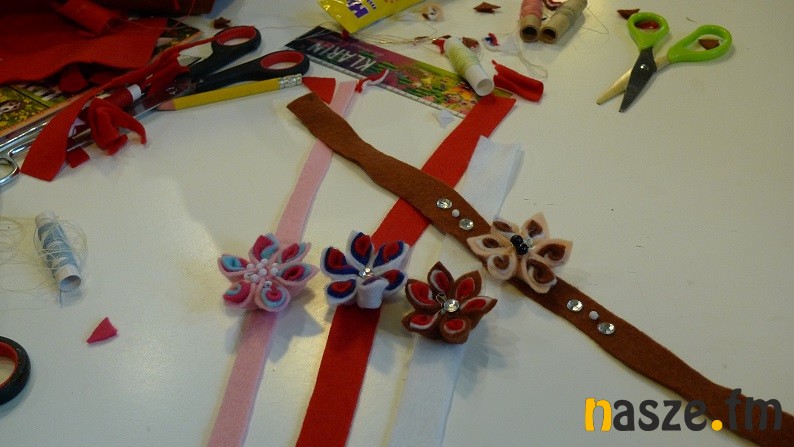 Dzieci zamiast wstążek do robienia kwiatów wykorzystały dziś kolorowy filc, efekty ich pracy możecie obejrzeć na zdjęciach poniżej.