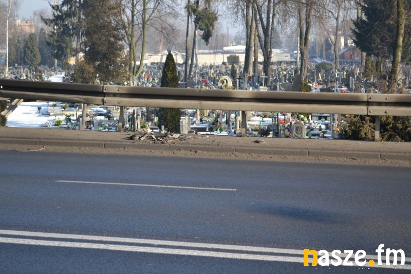 "Tydzień temu miał miejsce wypadek na wiadukcie w Sieradzu do dzisiaj nie została naprawiona bariera ochronna oraz po całej jezdni jak na jednym pasie także na drugim znajdują się części tego samochodu co może spowodować uszkodzenie innych aut a także osób przechodzących chodnikiem. Bardzo proszę o interwencję."