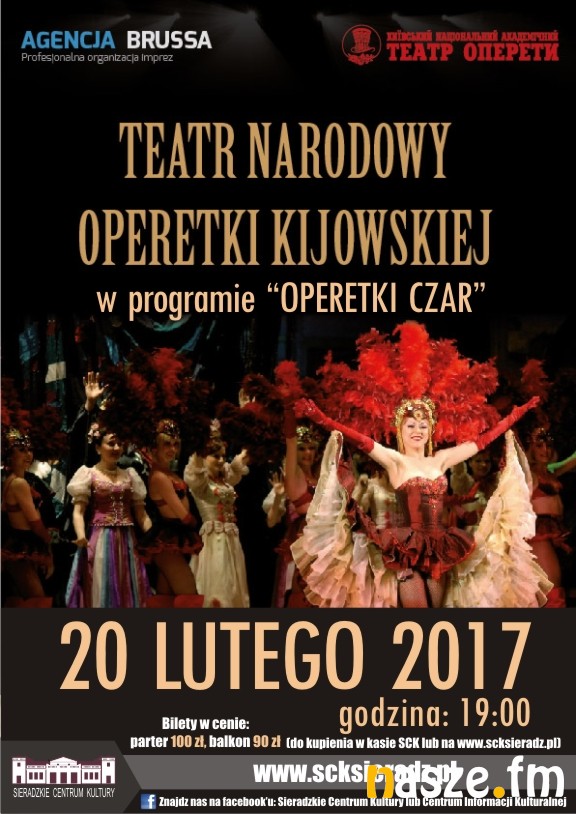 Czas trwania: 2 godz. 45 min. z przerwą. Artyści wystąpią w poniedziałek 20 lutego, początek o godz. 19:00. Bilety w cenie: parter 100 zł, balkon 90 zł (do kupienia w kasie SCK lub na www.scksieradz.pl).