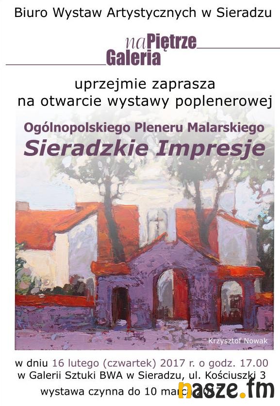Dziś w sieradzkim Biurze Wystaw Artystycznych odbędzie się otwarcie wystawy "Sieradzkie impresje". Będzie to wystawa poplenerowa, ogólnopolskiego pleneru malarskiego, który odbył się w maju ubiegłego roku w Klasztorze Sióstr Urszulanek w Sieradzu.