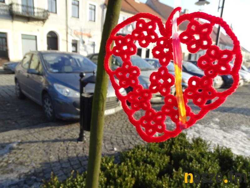 - Postanowiłyśmy z okazji walentynek zrobić na szydełku przeróżne serduszka i rozwiesić je na drzewach wokół Rynku. Chciałybyśmy,żeby dzisiaj te serduszka zostały na tych drzewach,ewentualnie żeby mieszkańcy zabrali je sobie jutro. Są one wykonane przeróżnymi metodami, zwykłym szydełkiem, frywolitką, szyte, jest wiklina papierowa. Każda z nas robiła różne serduszka, takie jakie potrafiła. W ten sposób próbujemy upiększyć Rynek w Sieradzu - mówi Irena Sapiejka z "Szydełkowych Kwadratów"