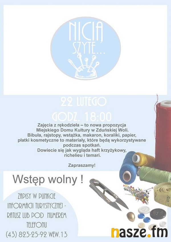 Rajstopy, bibuła, wstążka, makaron, koraliki, papier czy płatki kosmetyczne to materiały, które będą wykorzystywane podczas spotkań. Będzie się można dowiedzieć co to jest haft krzyżykowy, richelieu czy temarki.