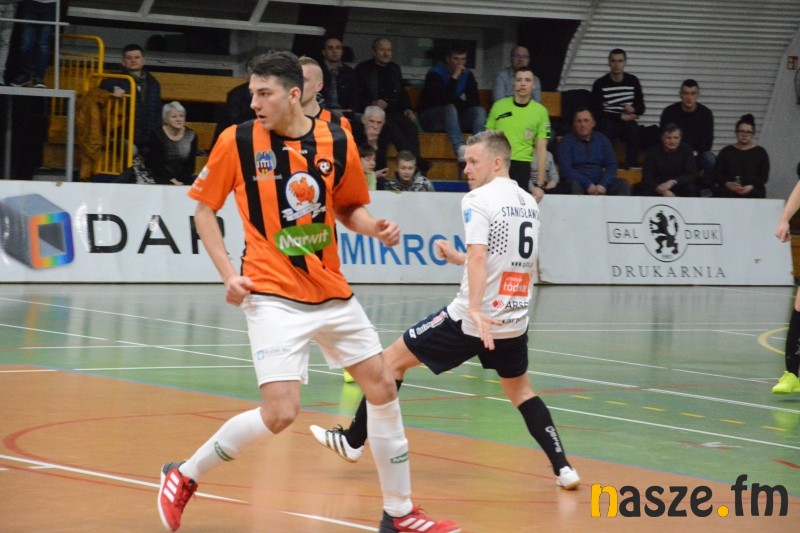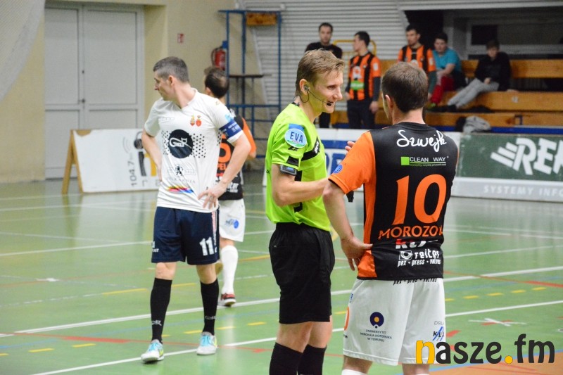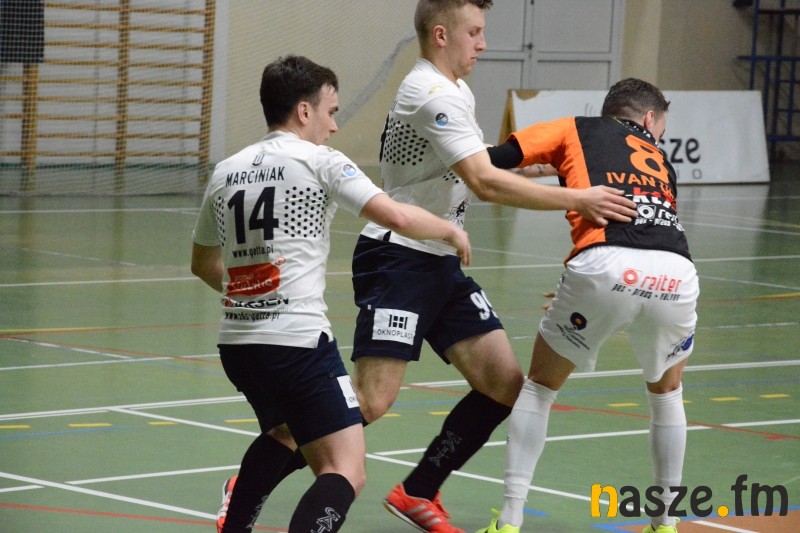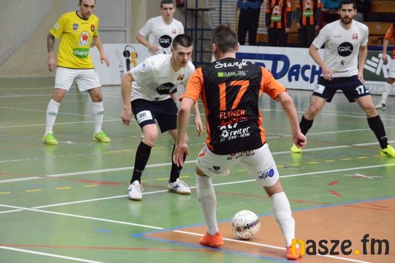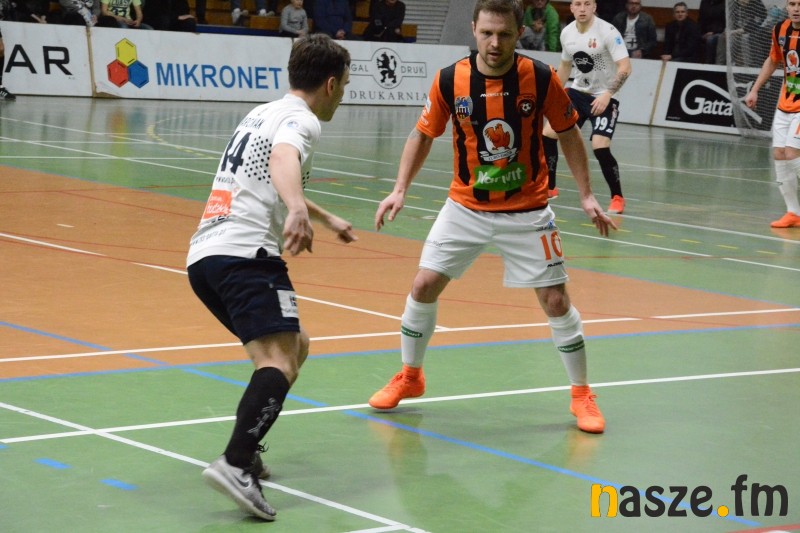 Dla Gatty dzisiejszy pojedynek był okazją do rewanżu za przegrany mecz w lidze. 6 lutego w Toruniu gospodarze pokonali Mistrzów Polski 5:4. Podopieczni Klaudiusza Hirsza od samego początku dali do zrozumienia, że do Zduńskiej Woli nie przyjechali się bronić, już od pierwszego gwizdka sędziego grali bowiem z lotnym bramkarzem. Ta taktyka omal nie przyniosła im gola w 3. minucie po strzale Mikołajewicza, ale najlepszy snajper Futsal Ekstraklasy minimalnie się pomylił. W odpowiedzi w idealnej sytuacji źle z najbliższej odległości uderzał Szypczyński. Kolejne minuty to przewaga gospodarzy, najbliższy wpisania się na listę strzelców był Sobalczyk, ale jego uderzenie ładnie obronił Naparło. Publiczność w hali przy ul. Złotej na pierwszą bramkę doczekała się w 9. minucie. Rzut wolny perfekcyjnie wykonał Milewski i zduńskowolanie objęli prowadzenie. W 11. minucie znów zapachniało golem, jednak uderzenie Marciniaka zatrzymało się na słupku. Z kolei obok długiego słupka posłał piłkę Spychalski, który miał przed sobą tylko Miłosińskiego, była 15. minuta meczu. Chwilę później naszego bramkarza uratował słupek po uderzeniu Elsnera. Mimo kilku okazji z obydwu stron do przerwy wynik nie uległ zmianie.