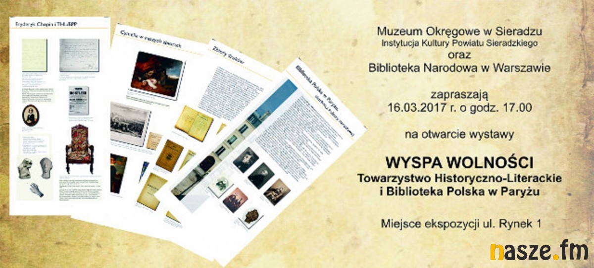 Muzeum Okręgowe w Sieradzu oraz Biblioteka Narodowa w Warszawie zapraszają 16 marca na otwarcie wystawy "WYSPA WOLNOŚCI Towarzystwo Historyczno-Literackie i Biblioteka Polska w Paryżu."