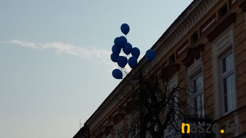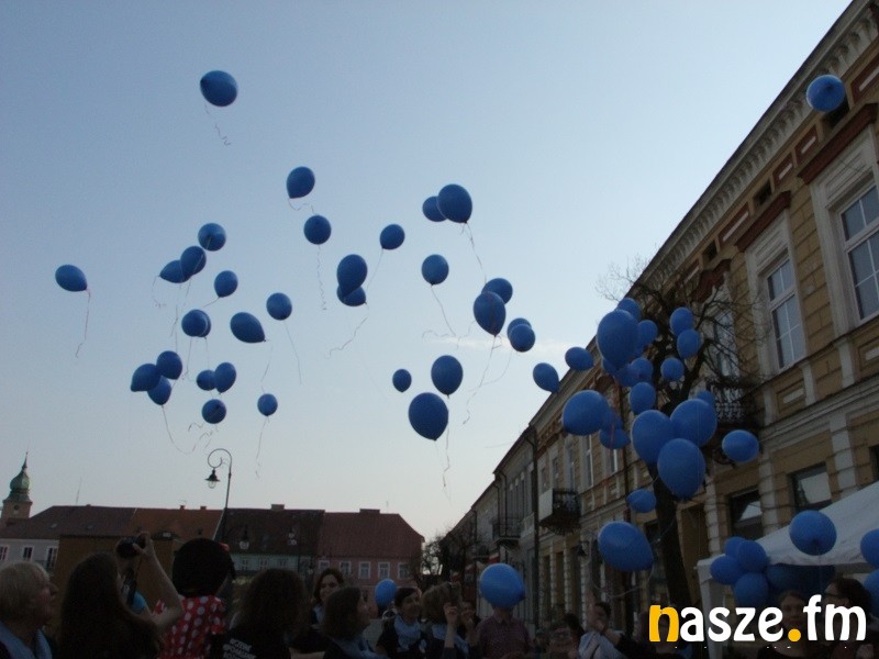 Zwieńczeniem pikniku było wypuszczenie w niebo niebieskich balonów.