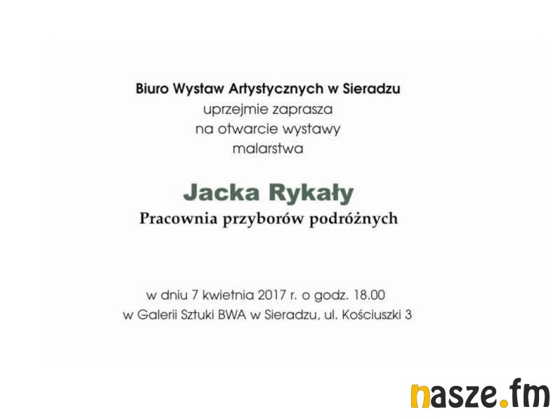 W najbliższy piątek ( 07.04 ) o godzinie 18 w Biurze Wystaw Artystycznych w Sieradzu otwarta zostanie wystawa autorstwa Jacka Rykały zatytułowana " Pracownia przyborów podróżnych".