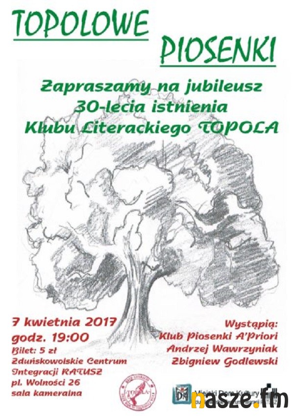 Klub Literacki Topola ze Zduńskiej Woli świętuje jubileusz 30-lecia istnienia. Na piątek, 7 kwietnia w Ratuszu zaplanowano koncert, podczas którego nie zabraknie wierszy "Topolan" w oprawie muzycznej.