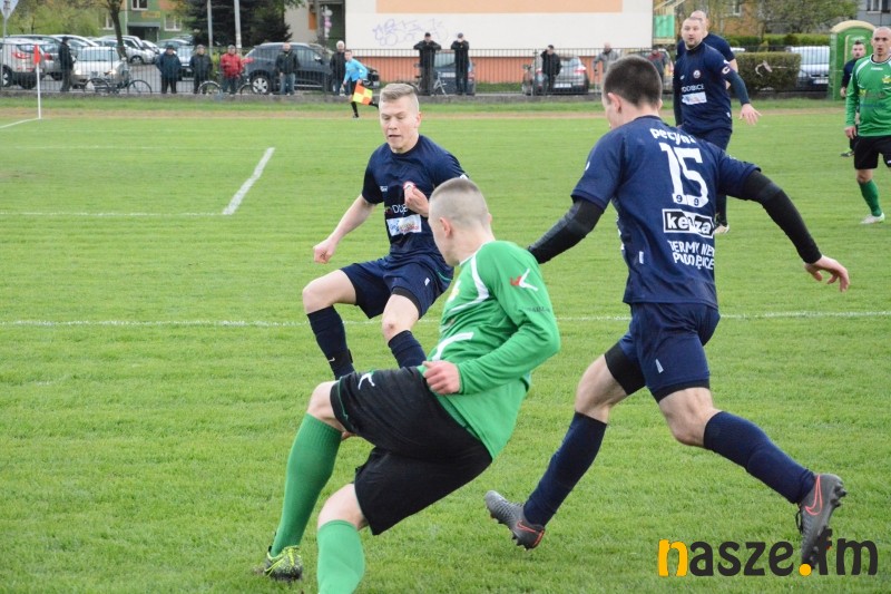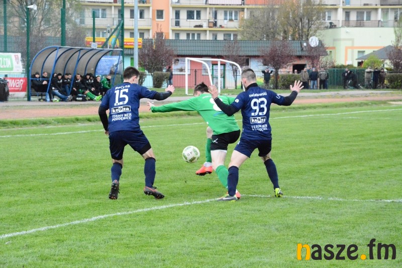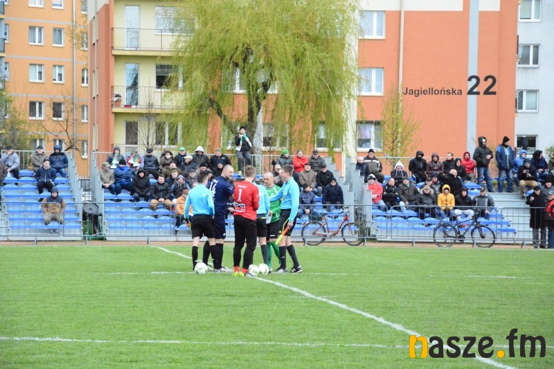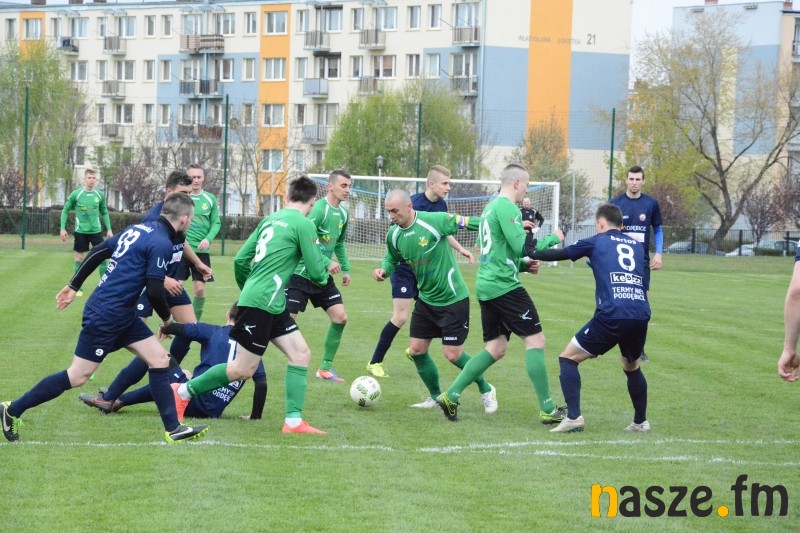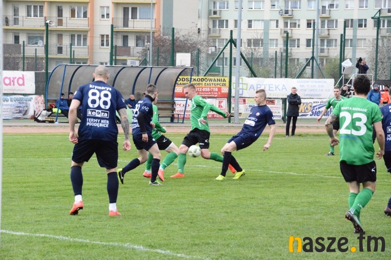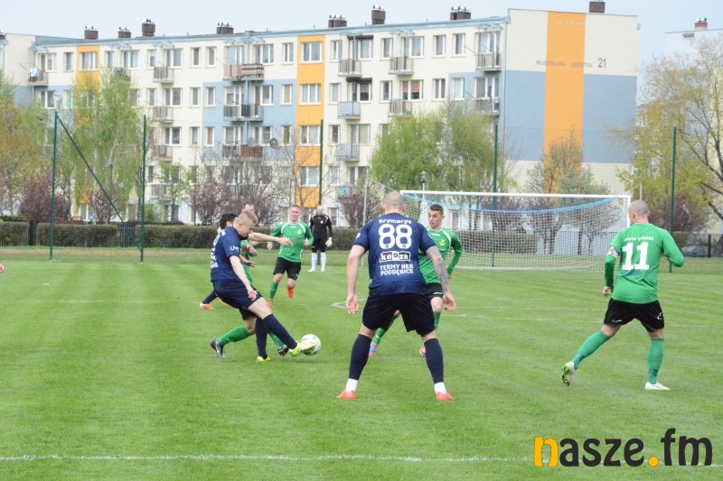 Gospodarze przeważali przez większość spotkania, jednak mieli problemy ze sforsowaniem obrony przyjezdnych. W pierwszej połowie najlepszą okazję na zdobycie bramki z rzutu wolnego miał Mariusz Zawodziński. W drugiej części po zamieszaniu w polu karnym gości piłka wpadła nawet do siatki, ale sędzia wcześniej odgwizdał faul na