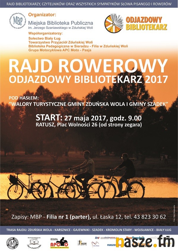 Rajd zaplanowano na 27 maja. Regulamin Rajdu Rowerowego i karta zgłoszenia dostępne pod adresem www.bibliotekazdwola.pl. Zgłoszenia można dokonać w MBP w Zduńskiej Woli (Filia nr 1) lub przesłać e-mail na adres: rajdmbp@onet.pl