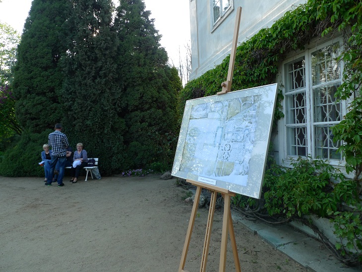 Przed głównym budynkiem można było zobaczyć plan parku z 1829 roku. [red. na podstawie takich starych dokumentów powstaje plan rewitalizacji parku].