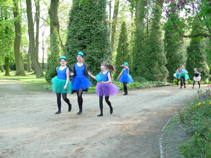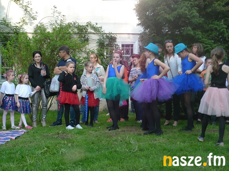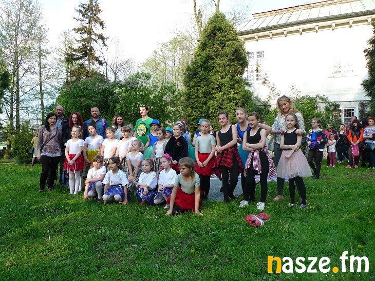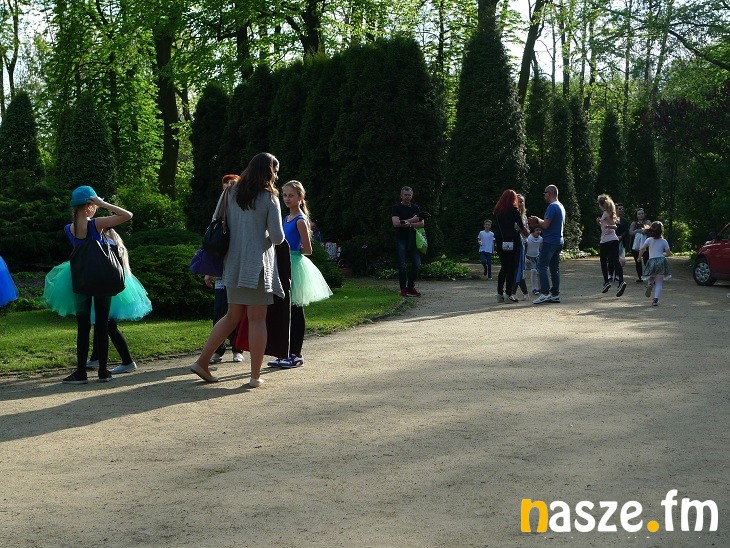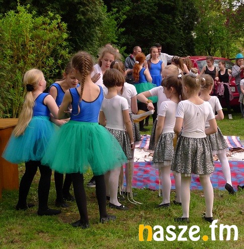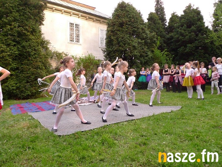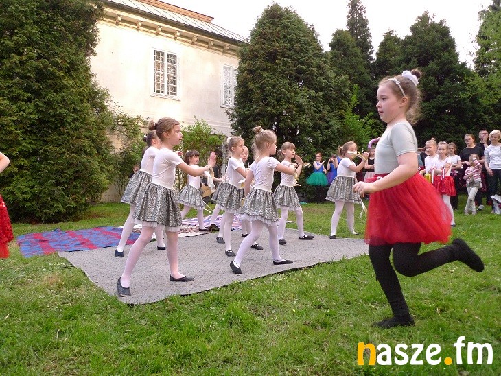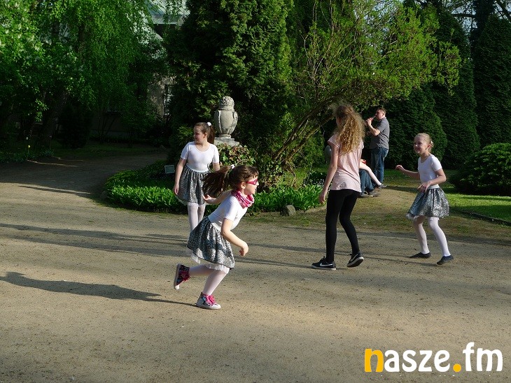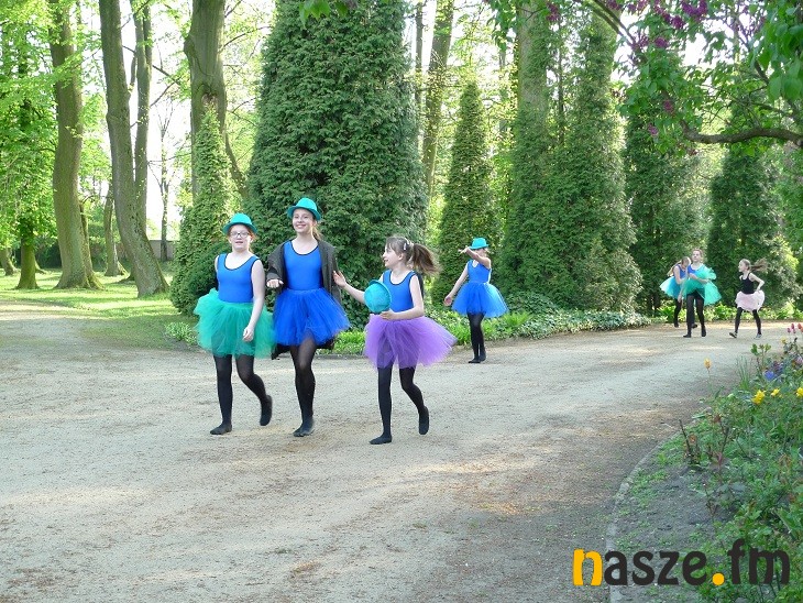 Dziś park i dwór były otwarte dla zwiedzających. Na tle zieleni wyróżniały się kolorowe stroje tancerek.
