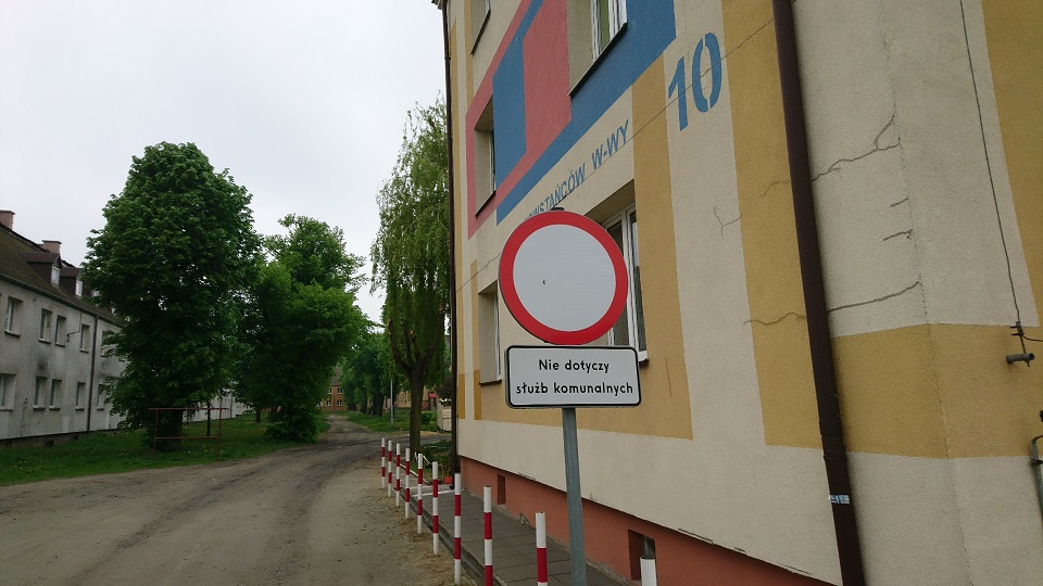 Ten znak został postawiony z jakiś tydzień temu. Zgodnie z nim miedzy blokami nie może wjechać rower. Uczą nie przestrzegania przepisów, nikt nie pomyśli jaki tu znak powinien być tylko stawiają taki jaki maja aktualnie na magazynie. To jest na ulicy Targowej naprzeciwko Biedronki.