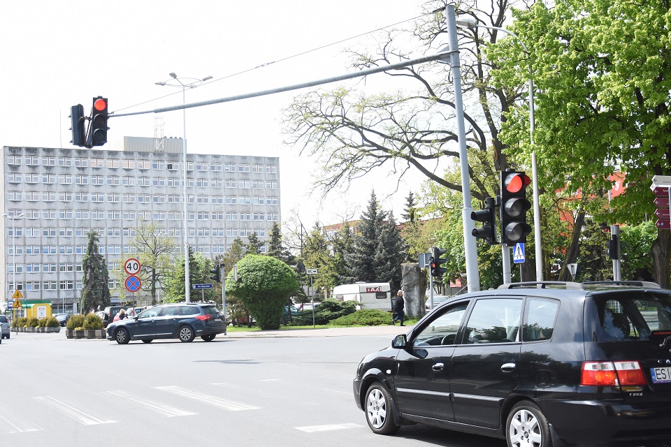 Nie wiem czy naprawdę żadne służby nie obchodzą bezsensownie ustawione światła w Sieradzu? Policja, Straż Miejska??