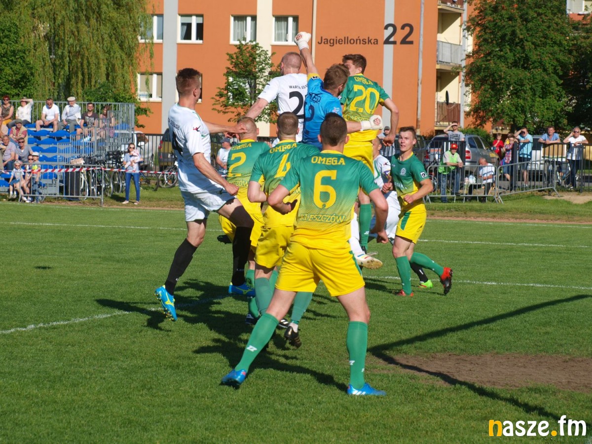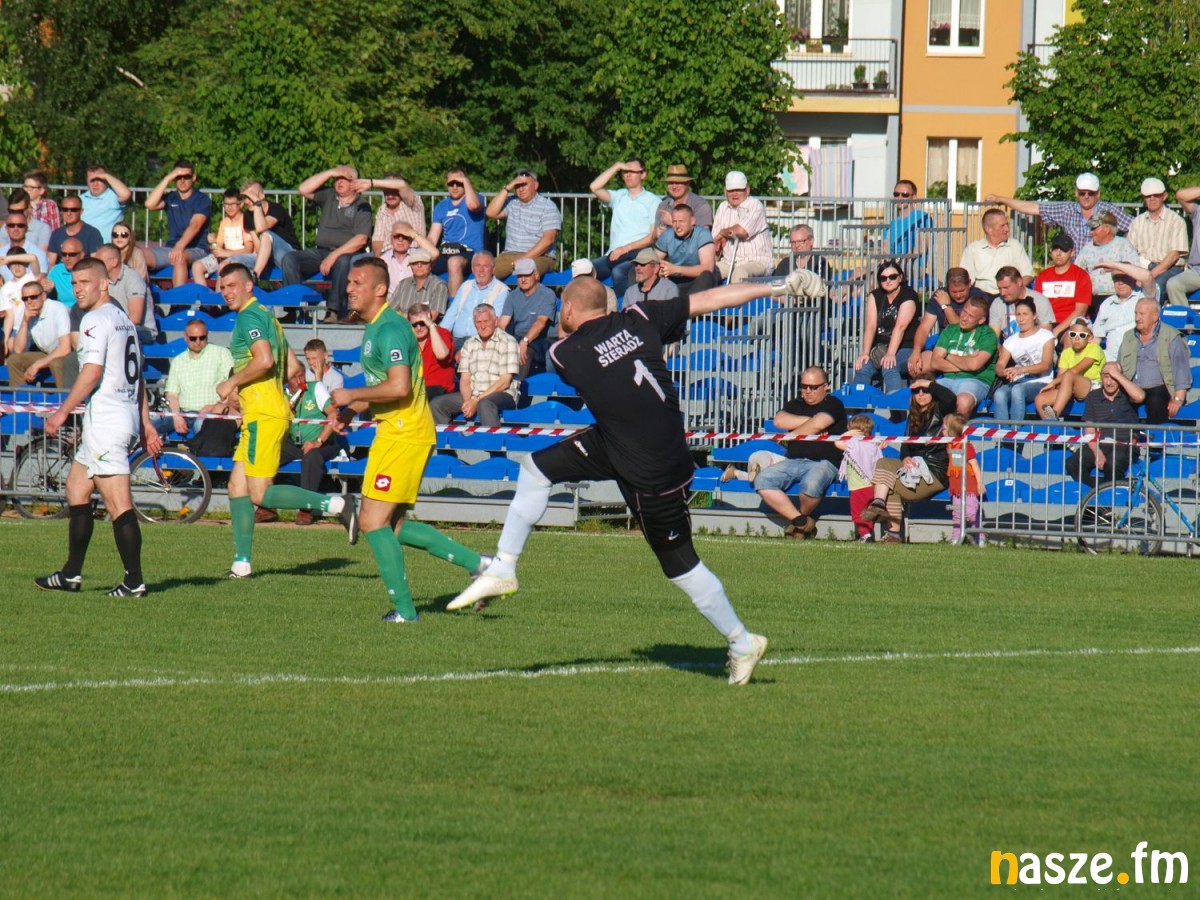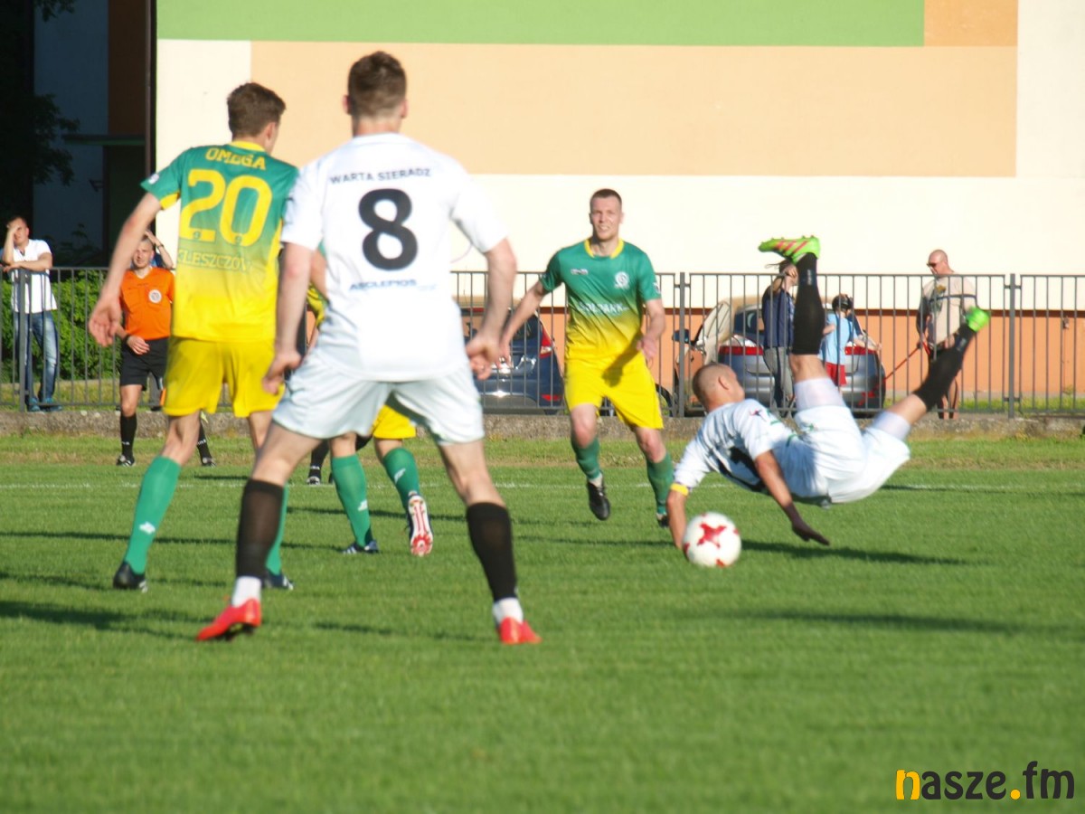 W przypadku zwycięstwa nad Omegą i ewentualnej porażki Warty Działoszyn z Unią Skierniewice piłkarze z Sieradza już dziś mogli sobie zapewnić awans do III ligi. W Działoszynie wygrali gospodarze, a niewiele brakowało, by lider stracił punkty w spotkaniu z drużyną z Kleszczowa. Podopieczni Łukasza Markiewicza byli stroną wyraźnie dominującą, ale brakowało im dziś wykończenia akcji. Gospodarze często strzelali z dystansu, a w 35. minucie Jarosław Szyc trawił nawet w poprzeczkę. Kiedy wydawało się, że spotkanie zakończy się podziałem punktów piłka trafiła do Marcina Kobierskiego, który przepchnął obrońcę i zdołał jeszcze przelobować bramkarza. Piłka wpadła do siatki już po upływie doliczonego czasu gry, a gol kapitana Warty dał biało-zielonym upragnione 3 punkty.