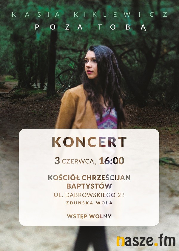 Klub Kobiet Pozytywka zaprasza na koncert Kasi Kiklewicz. Wydarzenie zaplanowano na 3 czerwca w Kościele Chrześcijan Baptystów w Zduńskiej Woli.