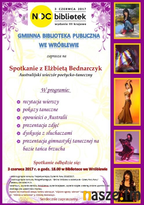 - spotkanie autorskie z poetką i tancerką Ewą Bednarczyk dla dzieci i dorosłych,