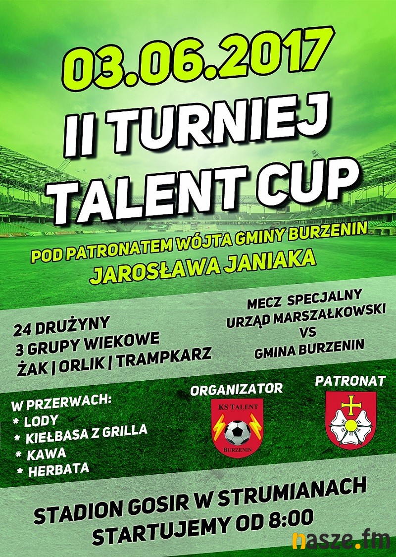 Już w sobotę na stadionie GOSIR w Strumianach odbędzie się druga edycja Turnieju Talent Cup. Patronat nad imprezą objął wójt Burzenina Jarosław Janiak.
