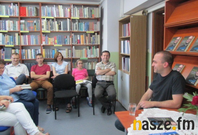 Piotr Żyłka dziennikarz i publicysta z Krakowa, współautor książki „Życie na pełnej petardzie” z ks. Janem Kaczkowskim oraz „Przepis na (cholernie) szczęśliwe życie” z s. Małgorzatą Chmielewską. Autor opowiedział jaki wpływ na jego życie miało spotkanie z charyzmatycznym księdzem oraz zakonnicą ze Wspólnoty „Chleb Życia&rdquo, jak uczył się pokory i wiary, jak zmieniała się hierarchia wartości. Słuchacze dowiedzieli się także o pracy dziennikarza internetowego portalu „Deon” i o tym jak prowadzi się polską stronę papieża Franciszka „FaceBóg”. Spotkanie prowadziła Anna Baśnik. Po zakończeniu spotkania Piotr Żyłka podpisał książki i rozmawiał z czytelnikami.