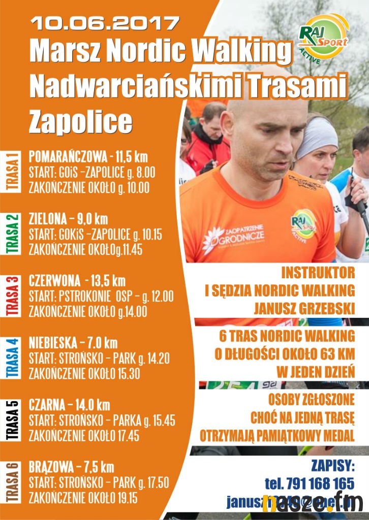 To kolejna impreza w naszym regionie, której celem jest propagowanie zdrowego trybu życia. Marsz odbędzie się w najbliższą sobotę (10.06) na terenie gminy Zapolice. Uczestnicy będą mieli do wyboru sześć różnych tras o łącznej długości ponad 60 km.