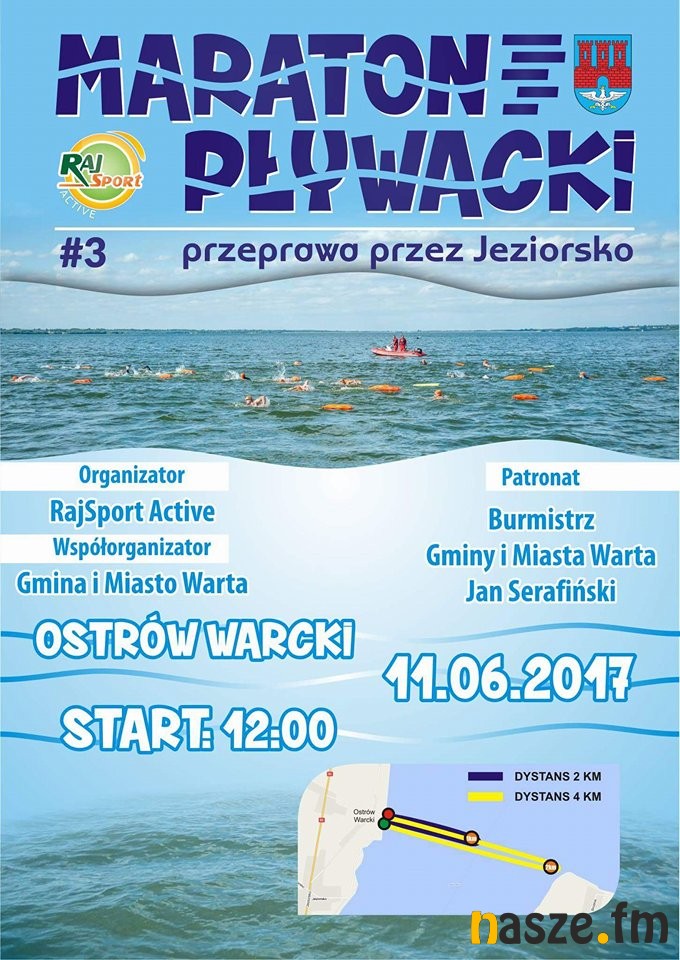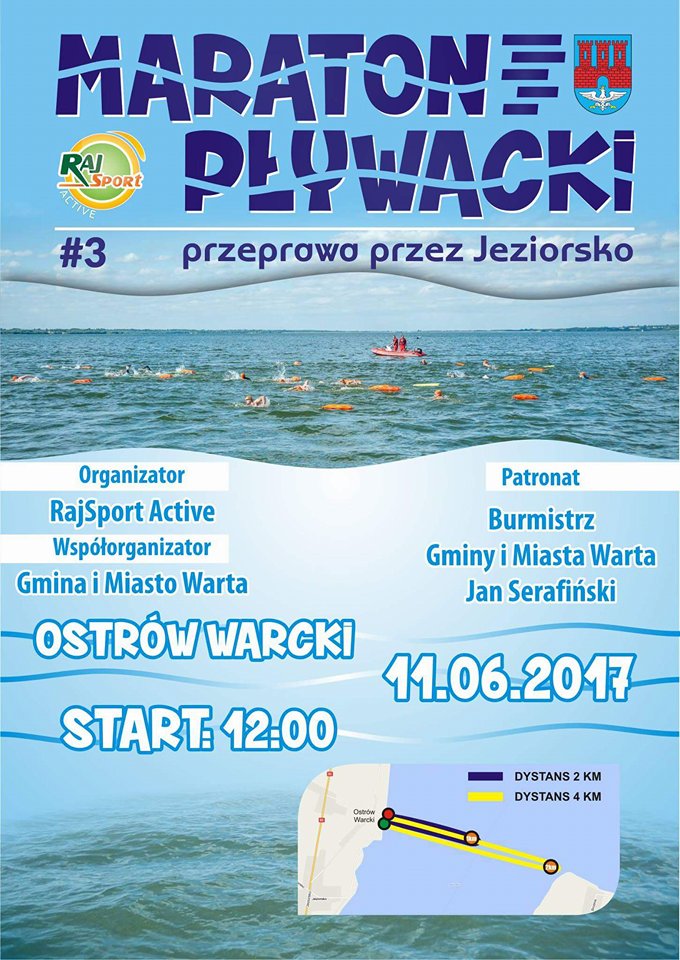 Przeprawa przez Jeziorsko to impreza, którą od 3 lat organizuje stowarzyszenie Raj Sport Active. W tym roku uczestnicy będą mieć do wyboru dwa dystanse: 4000 m (z Ostrowa Warckiego na drugi brzeg i z powrotem) i 2000 m (z Ostrowa Warckiego do boi i z powrotem). Organizatorzy zapewniają elektroniczny pomiar czasu. Biuro zawodów w porcie Jeziorsko czynne będzie od 10:00, planowany start o 12:00. Start dla obydwu dystansów i wszystkich kategorii (kobiety, mężczyźni, w piance lub bez pianki) będzie wspólny.