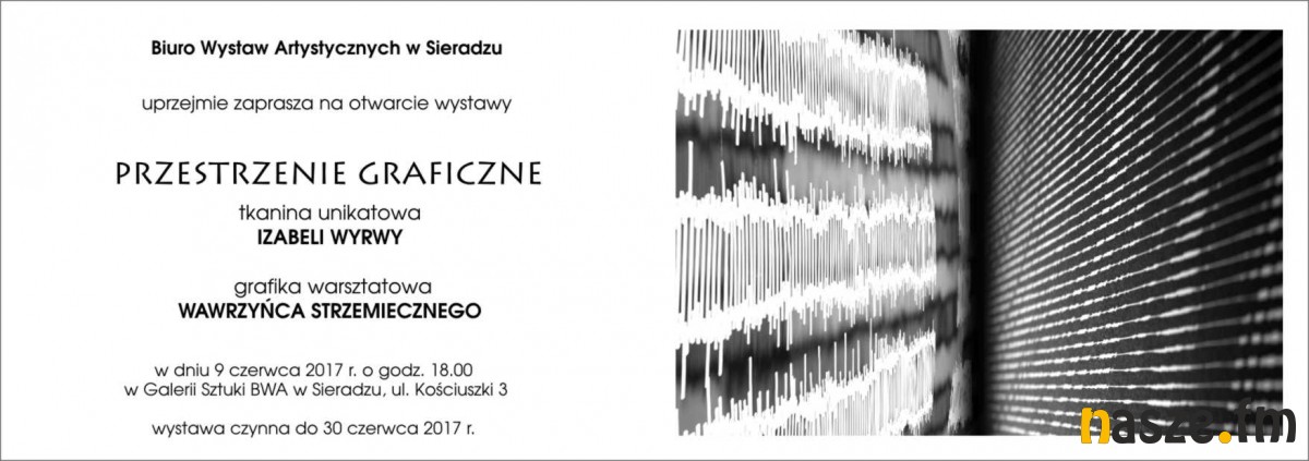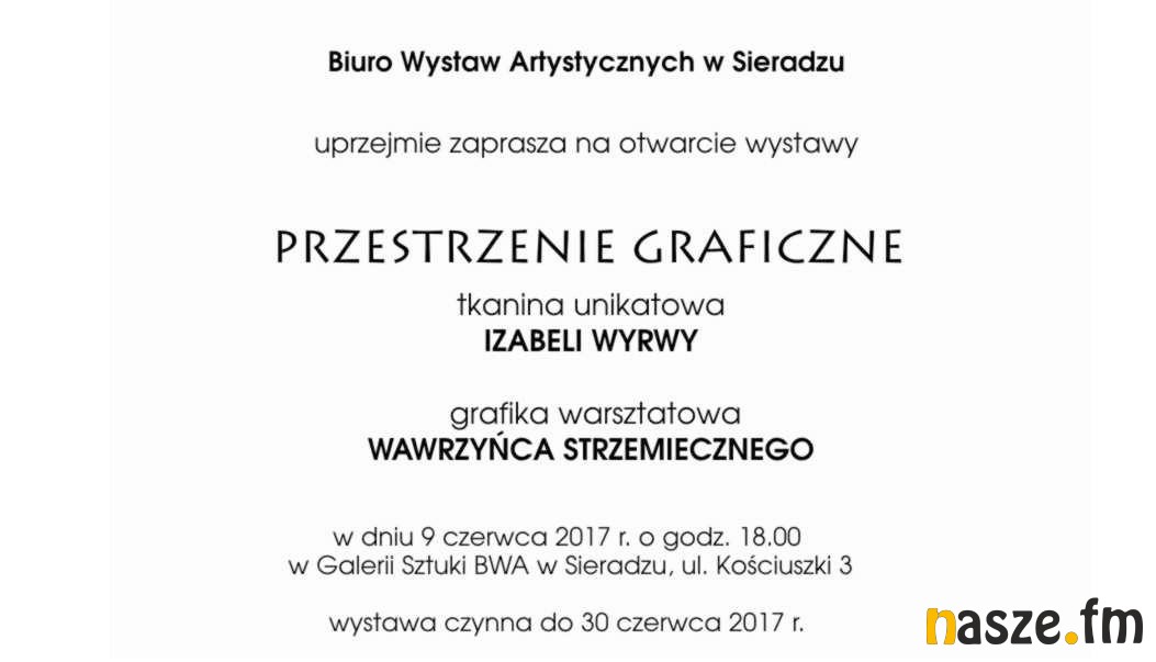 W piątek (9.06) w Biurze Wystaw Artystycznych w Sieradzu otwarcie wystawy "Przestrzenie graficzne" autorstwa Izabeli Wyrwy i Wawrzyńca Strzemiecznego. Początek o godzinie 18.
