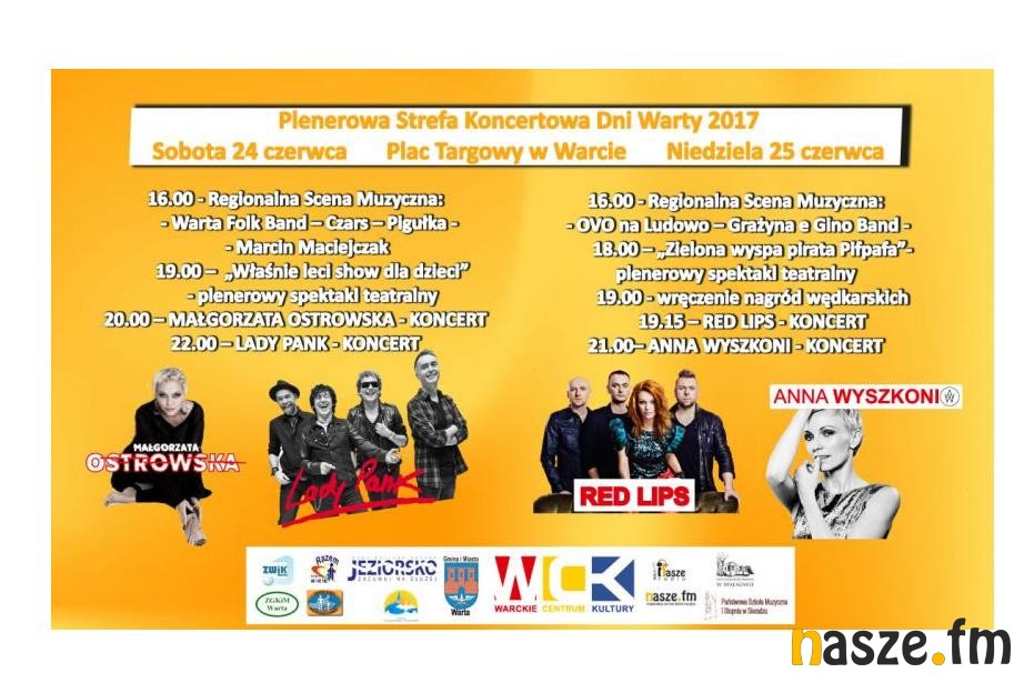 Najbliższy weekend, przyniesie wiele muzycznych wydarzeń. W ramach tegorocznych Dni Warty na scenie wystąpią Małgorzata Ostrowska, Lady Pank, nie zabraknie także Ani Wyszkoni czy zespołu Red Lips.