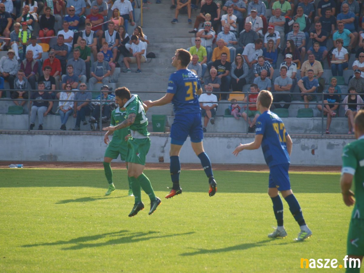 45' ogromne zamieszanie pod bramką Stomilu, mamy rzut rożny, po nim uderzał Lukasz Mitek, ale jego strzał poszybował wysoko nad poprzeczką. To była ostatnia akcja pierwszej połowy
