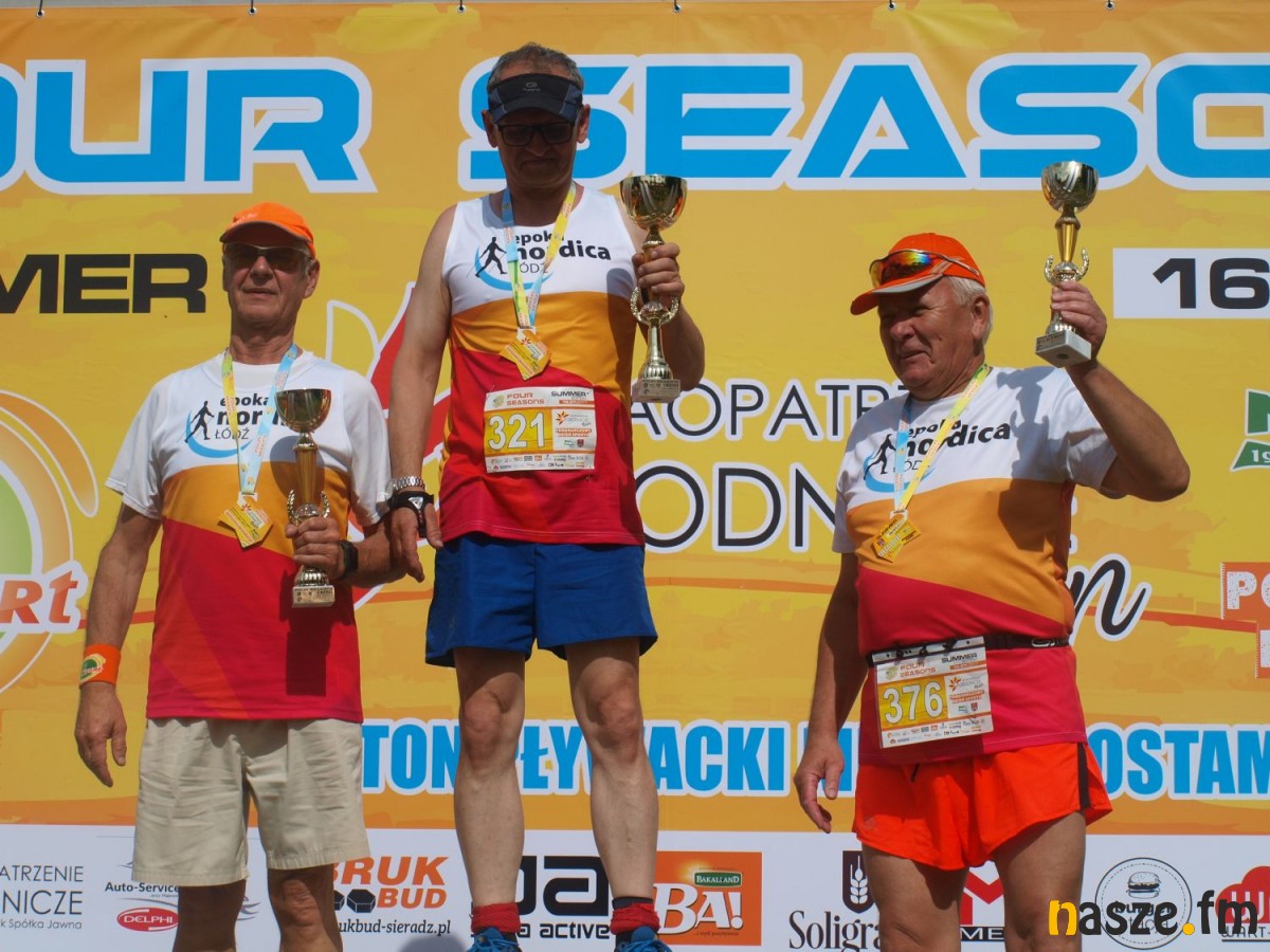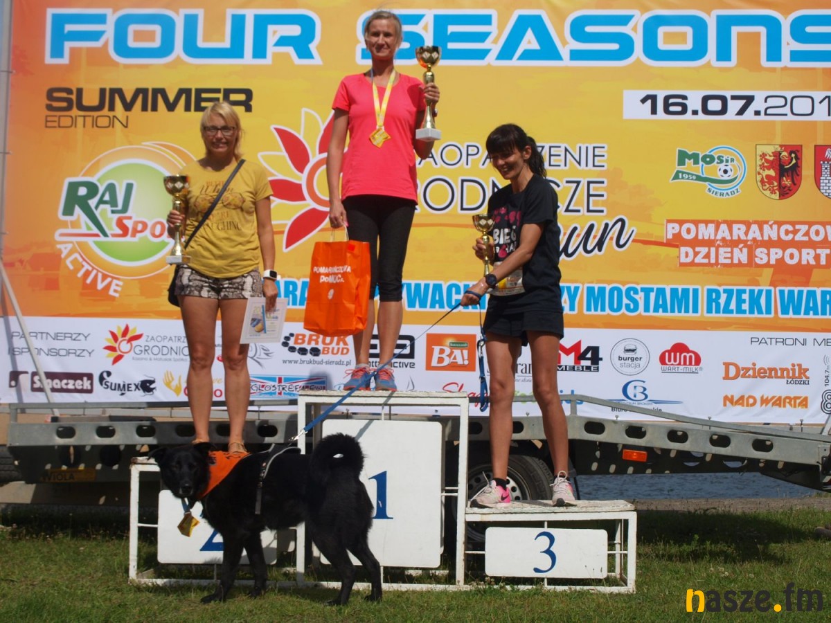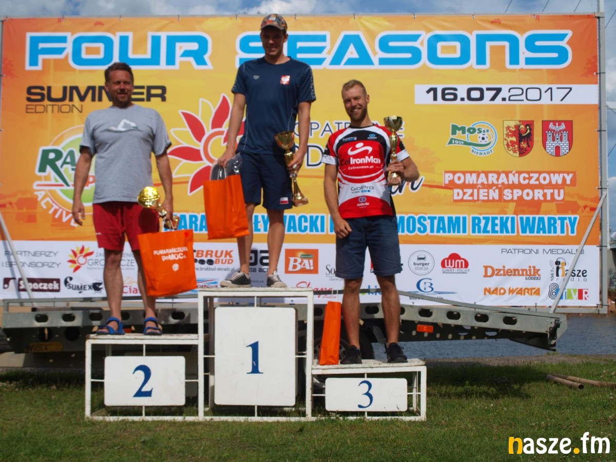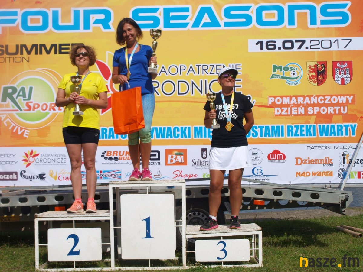 Four Seasons to cykl imprez sportowo-rekreacyjnych, rozgrywanych o każdej porze roku. Po wiosennej przyszła kolej na edycję letnią, w skład której weszły: bieg przełajowy i marsz nordic walking (5 km), bieg rodzinny (ok. 1000 m) i maraton pływacki (ok. 2000 m). Każdy uczestnik poszczególnych edycji może kolekcjonować kolejne ćwiartki pamiątkowego medalu, który po ostatniej edycji złoży się w jedną całość. Choć impreza miała charakter rekreacyjno-integracyjno-rodzinny, to na starcie nie zabrakło prawdziwych profesjonalistów. Maraton rzeczny wygrał Jan Urbaniak (Warta Poznań), który specjalizuje się w pływaniu długodystansowym, a jego koronnym dystansem jest 10 km. Pływak z Wielkopolski jest wielokrotnym mistrzem naszego kraju, a także reprezentantem Polski. Na prawdziwy szacunek zasłużył Władysław Adamiak z Sieradza, który pokonał Wartę w wieku 81 lat, jako najstarszy uczestnik wyścigu i całej imprezy! Patrząc na przekrój wiekowy uczestników wszystkich konkurencji przypomina się modne niegdyś hasło: od dzidziusia do dziadziusia. Rzeczywiście, w biegu rodzinnym rodzice biegli z malutkimi pociechami na rękach. Klub Raj Sport Active (przy wsparciu sponsorów) zadbał, żeby żaden z uczestników i gości imprezy nie wyszedł z niej głodny i z pustymi rękoma. Wszyscy startujący otrzymali pamiątkowe medale, a najlepsi również pamiątkowe puchary. Swoją obecnością imprezę wsparł również sieradzki olimpijczyk Artur Kozłowski, który - co ciekawe - był także sędzią maratonu pływackiego.