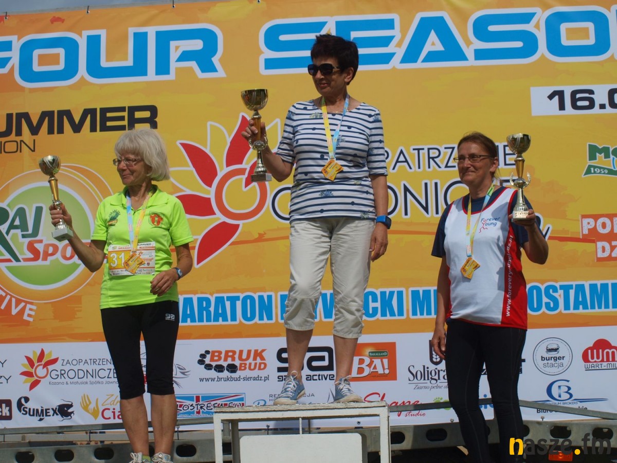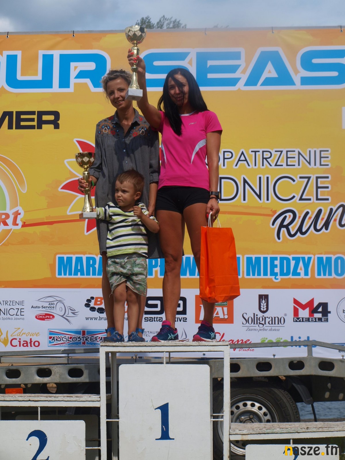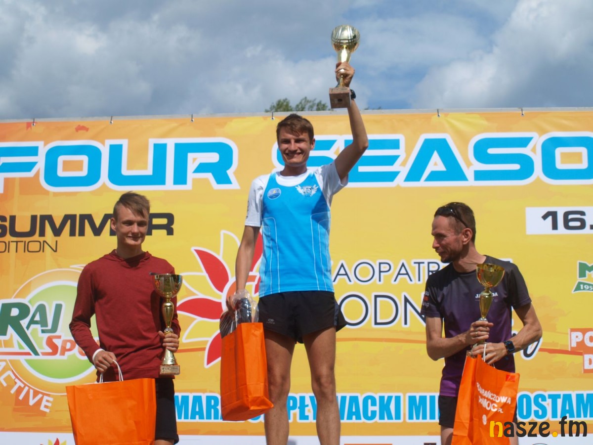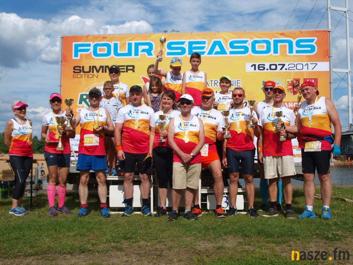 Four Seasons to cykl imprez sportowo-rekreacyjnych, rozgrywanych o każdej porze roku. Po wiosennej przyszła kolej na edycję letnią, w skład której weszły: bieg przełajowy i marsz nordic walking (5 km), bieg rodzinny (ok. 1000 m) i maraton pływacki (ok. 2000 m). Każdy uczestnik poszczególnych edycji może kolekcjonować kolejne ćwiartki pamiątkowego medalu, który po ostatniej edycji złoży się w jedną całość. Choć impreza miała charakter rekreacyjno-integracyjno-rodzinny, to na starcie nie zabrakło prawdziwych profesjonalistów. Maraton rzeczny wygrał Jan Urbaniak (Warta Poznań), który specjalizuje się w pływaniu długodystansowym, a jego koronnym dystansem jest 10 km. Pływak z Wielkopolski jest wielokrotnym mistrzem naszego kraju, a także reprezentantem Polski. Na prawdziwy szacunek zasłużył Władysław Adamiak z Sieradza, który pokonał Wartę w wieku 81 lat, jako najstarszy uczestnik wyścigu i całej imprezy! Patrząc na przekrój wiekowy uczestników wszystkich konkurencji przypomina się modne niegdyś hasło: od dzidziusia do dziadziusia. Rzeczywiście, w biegu rodzinnym rodzice biegli z malutkimi pociechami na rękach. Klub Raj Sport Active (przy wsparciu sponsorów) zadbał, żeby żaden z uczestników i gości imprezy nie wyszedł z niej głodny i z pustymi rękoma. Wszyscy startujący otrzymali pamiątkowe medale, a najlepsi również pamiątkowe puchary. Swoją obecnością imprezę wsparł również sieradzki olimpijczyk Artur Kozłowski, który - co ciekawe - był także sędzią maratonu pływackiego.