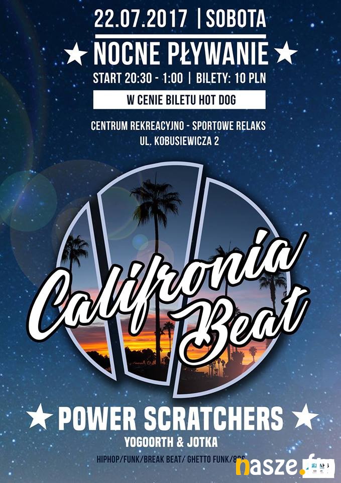 Przed nami kolejna odsłona nocnego pływania na basenach odkrytych przy ul. Kobusiewicza w Zduńskiej Woli. Jutro (22.07) obędzie się tam impreza pod nazwą "California Beat".