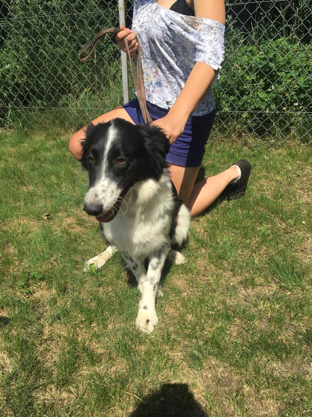 - Dora to mieszanka Border Collie, jest czarno-biała, średniej wielkości. Ma około 1,5 roku. Bardzo spokojna, zrównoważona, idealna dla rodziny z dziećmi. Jest nauczona czystości, pięknie chodzi na smyczy, idealnie odnajdzie się w nowym miejscu.