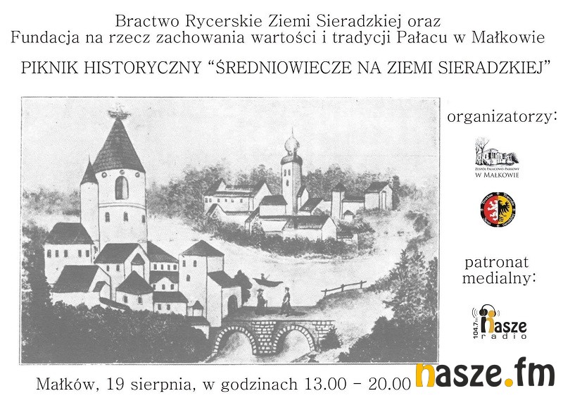 Bractwo Rycerskie Ziemi Sieradzkiej oraz Fundacja na Rzecz Zachowania Wartości i Tradycji Pałacu w Małkowie zapraszają na Piknik historyczny "Średniowiecze na ziemi sieradzkiej".