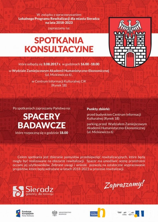 Urząd Miasta Sieradza zaprasza wszystkich mieszkańców na spotkania konsultacyjne i spacery badawcze dotyczące rewitalizacji miasta.